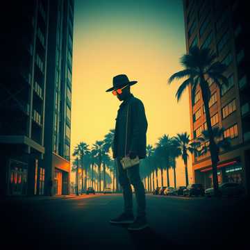 West Coast G-funk bounce, swung drums, slap bass, and throwback synth leads, Male vocals with laid-back, confident delivery; talkbox hooks layered with airy backing harmonies, Verses ride a cruising pocket, chorus widens with stacked chords and extra percussion, Occasional record-stop stabs and siren sweeps accent transitions, keeping the street-film vibe cinematic but playful, theme