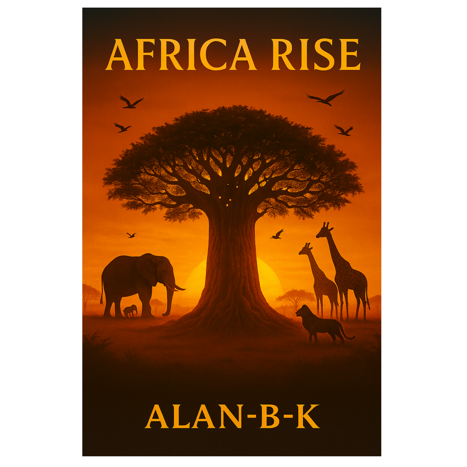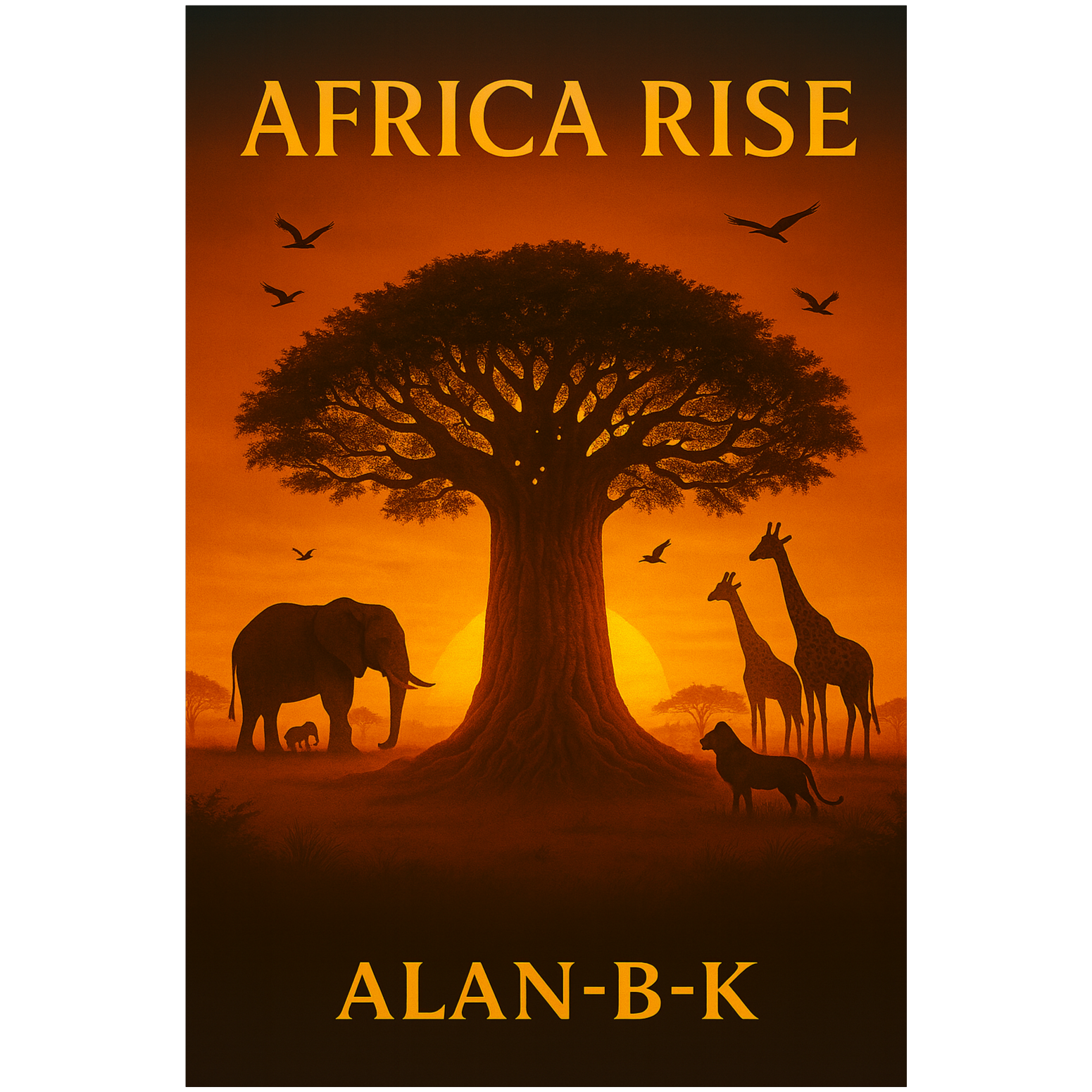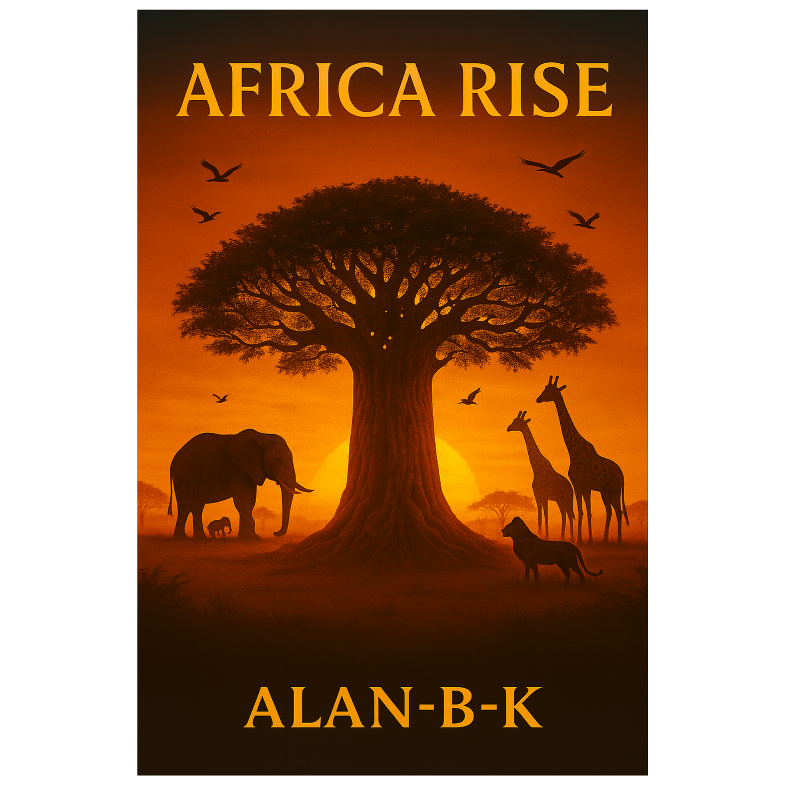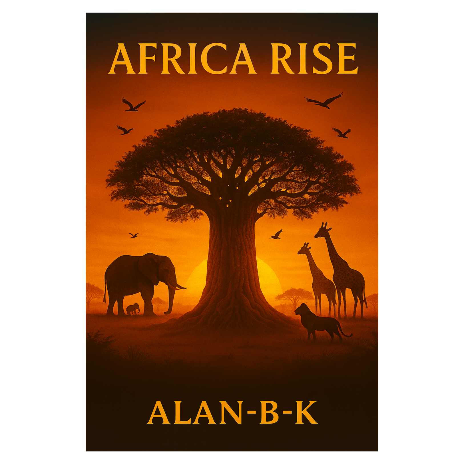 Distant drums echo across the savanna, layered with shakers and congas that build like a heartbeat of the land, A rising horn call pierces the air, soon joined by a deep bassline rolling steady, At 90 BPM the one-drop groove locks in, rimshots sharp, kick grounding, hi-hat shimmering, Acoustic guitar strums add warmth, while Hammond organ bubbles beneath the rhythm, A powerful male lead begins with verses of struggle and hope, answered by a female choir in soaring harmonies, Midway, a rap/toast section erupts with fiery roots wisdom, weaving urgency into the flow, The bridge explodes into chants: “Africa rise! Africa strong!” echoed by crowd-style vocals, horns blasting in syncopation, percussion swelling, Final chorus expands into full-band unity, layers of choir and instruments creating a festival wall of sound, Dub echoes trail into the night sky, A triumphant, anthemic Roots-Reggae celebration with unmistakable Alan-B-K signature