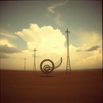 Ambient cinematic techno w/ heavy beats, grunge guitars, orchestral strings, male and female choral vocals, tension-building crescendos