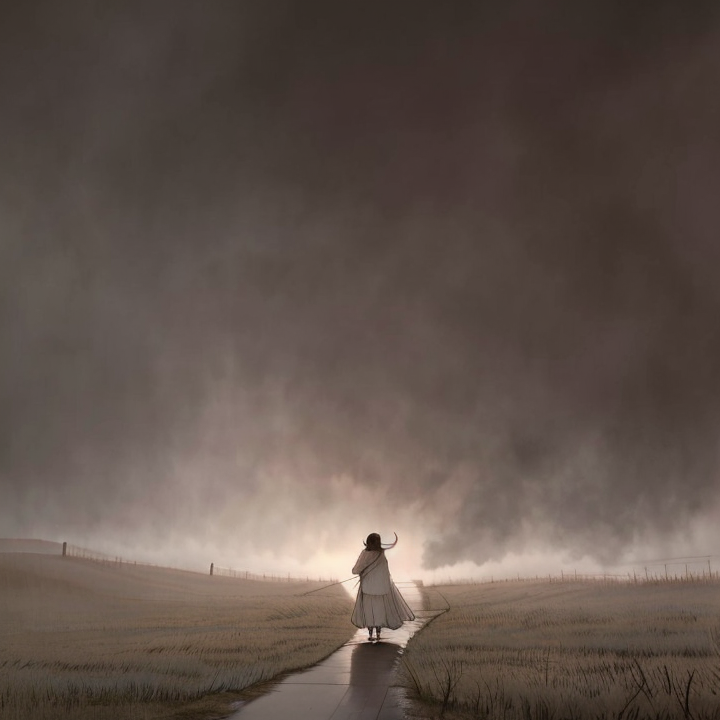 Atmospheric cinematic post-rock with ambient synths, clean electric guitar, slow tempo, soft string textures, and ethereal vocals, Includes whispered spoken-word passages and distant choir effects, Dreamlike and mysterious tone, Ideal for a story ending with uncertainty and wonder