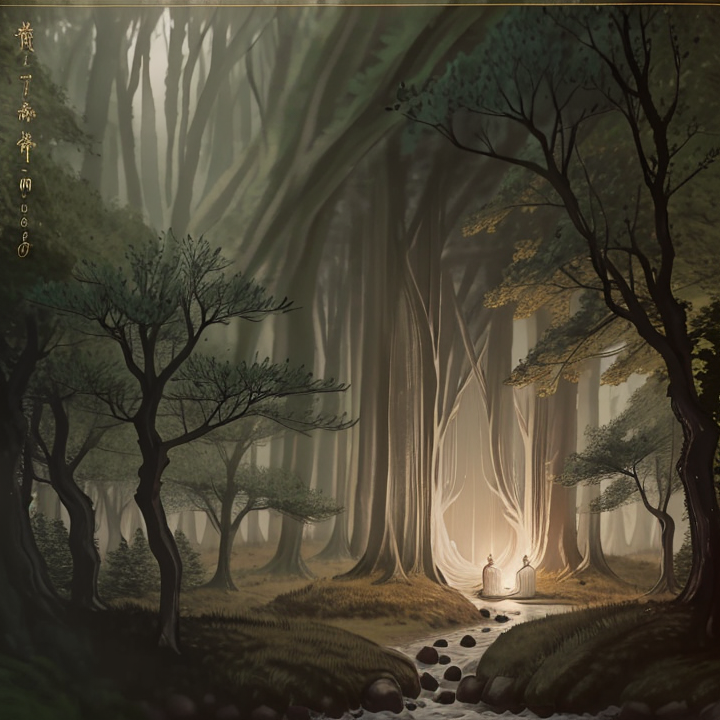 Cinematic mystical folk duet with acoustic guitar, female and male vocals, flute, light choir, and ambient sound textures, Magical atmosphere with ancient energy, Includes wind FX, subtle chimes, and natural ambience, Moderate tempo, emotionally uplifting and story-driven