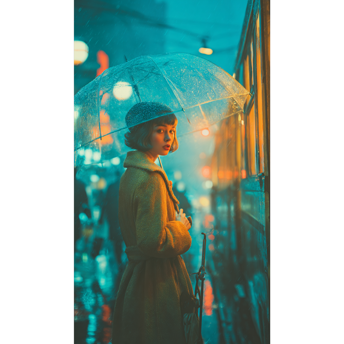 RHYTHM: live drums—rim‑snare, open‑hat off‑beat, ghost kicks; shaker joins chorus; bridge half‑time 48 BPM w/ ride swells; final chorus quick 6/8 lift, INST: twin clean guitars (chorus+delay arps), jazzy maj7/add9 chords, melodic bass, soft pad, glock bells, reverse cymbal risers, station ambi intro/outro, STRUCT: V1 16 → Pre 8 (flutter‑gtr + vocoder pad) → Ch 16 (dbl‑vox, gtr counter) → V2 16 (sync drum fills) → Bridge 12 (half‑time, piano+gtr swells) → Last Ch 24 (full mix, 6/8 tag×2, side‑chain) → Outro 8 (gtr harmonics + whisper “goodbye”), EXTRA: subtle chopped‑vocal FX for “電子感”, no artist names