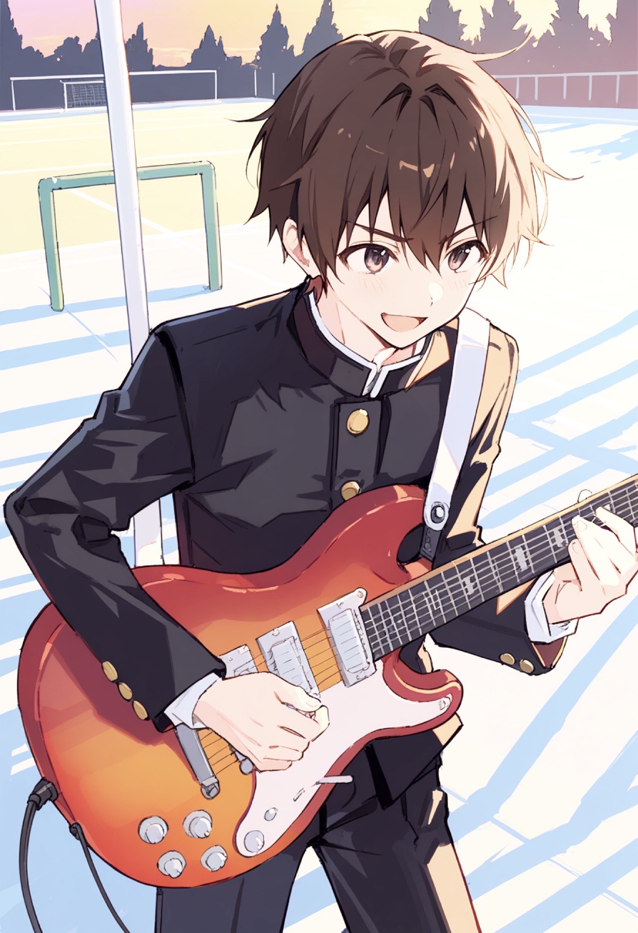 Instrumental: Electric guitar riffs, bass, drums, synth layers, soaring chorus