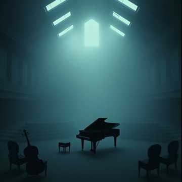 This instrumental piece is a dramatic and suspenseful orchestral composition, Slow, fog-drenched opening emerging from near silence, Deep low strings, distant horns, soft timpani, aged piano, harp, subtle mechanical textures, The key is minor, contributing to the somber and mysterious mood, The instrumentation primarily features strings, including violins, violas, cellos, and double basses, playing sustained chords and melodic lines, There are also prominent brass instruments, such as French horns and trombones, adding depth and power to the sound, Percussion, including timpani and cymbals, is used sparingly but effectively to punctuate key moments and build intensity, The arrangement is characterized by a gradual build-up of layers and dynamics, Swell emotionally but avoid triumph, No heroic release â only endurance, The production is clean and spacious, allowing each instrument to be clearly heard, with a focus on creating a grand and immersive soundscape