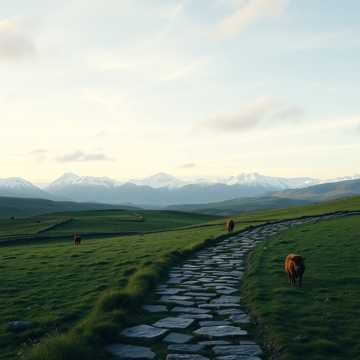 Epic cinematic instrumental inspired by the Basque countryside and El Camino de Santiago, blended with Mongolian and Siberian ambience, Sweeping green hills, grazing cattle, distant Pyrenees under vast sky, Style: orchestral film score with Basque folk, khoomei throat singing, and modern trap elements, Instruments: full orchestra, emotional piano, txalaparta, deep percussion, flute/alboka, tsuur, morin khuur textures, overtone throat singing (deep drone, harmonic vocals), subtle choir, ambient wind, Beat: laid-back trap drums, crisp snare, warm kick, soft hi-hats, chill 808 sub-bass, vinyl texture, Rhodes pads, Vocals: female rap (raspy, emotional, confident), mix of spoken word, rapid introspection, poetic and slightly sarcastic tone, Mood: epic, earthy, introspective, emotional yet powerful, Structure: ambient intro â flute & drone â beat enters â build orchestral + trap â climax (full fusion) â calm outro, Wide cinematic mix, dynamic, immersive