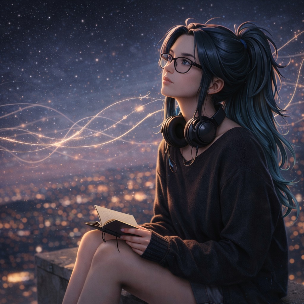 A dreamy lofi-shoegaze track built around washed chorus guitars, ambient pads, and a soft tape-saturated drum groove, Sub-bass pulses underneath shimmering guitar layers and wide stereo reverb, The rhythm remains slow and hypnotic while melodic guitars drift in a haze, Female vocals are airy, intimate, and slightly distant in the mix, blending into the ambient texture rather than dominating it, The overall mood is reflective, warm, and atmospheric, balancing melancholy with quiet confidence
