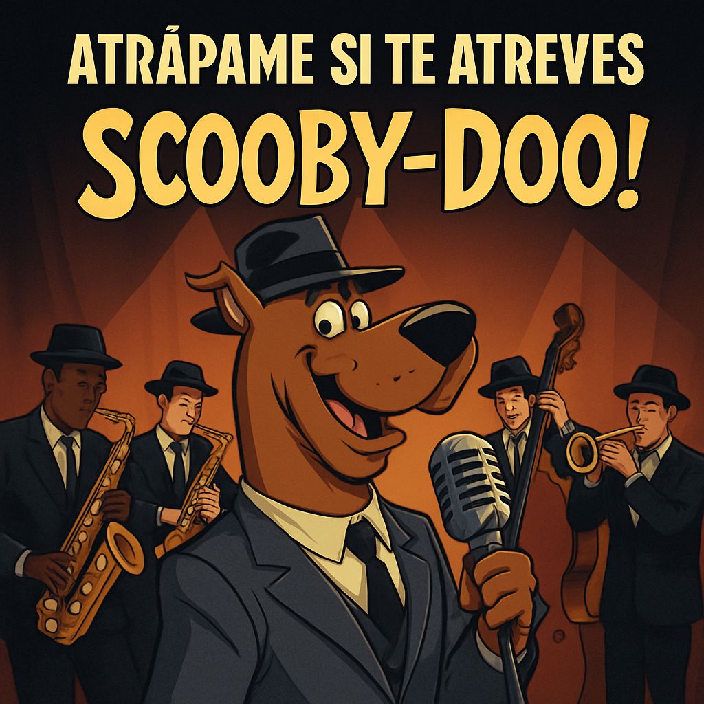 jazz, swing, big band, trumpets, saxophone, double bass, male vocal, energetic, playful, fast tempo, driving drums, strong snare, fast percussion, chase rhythm