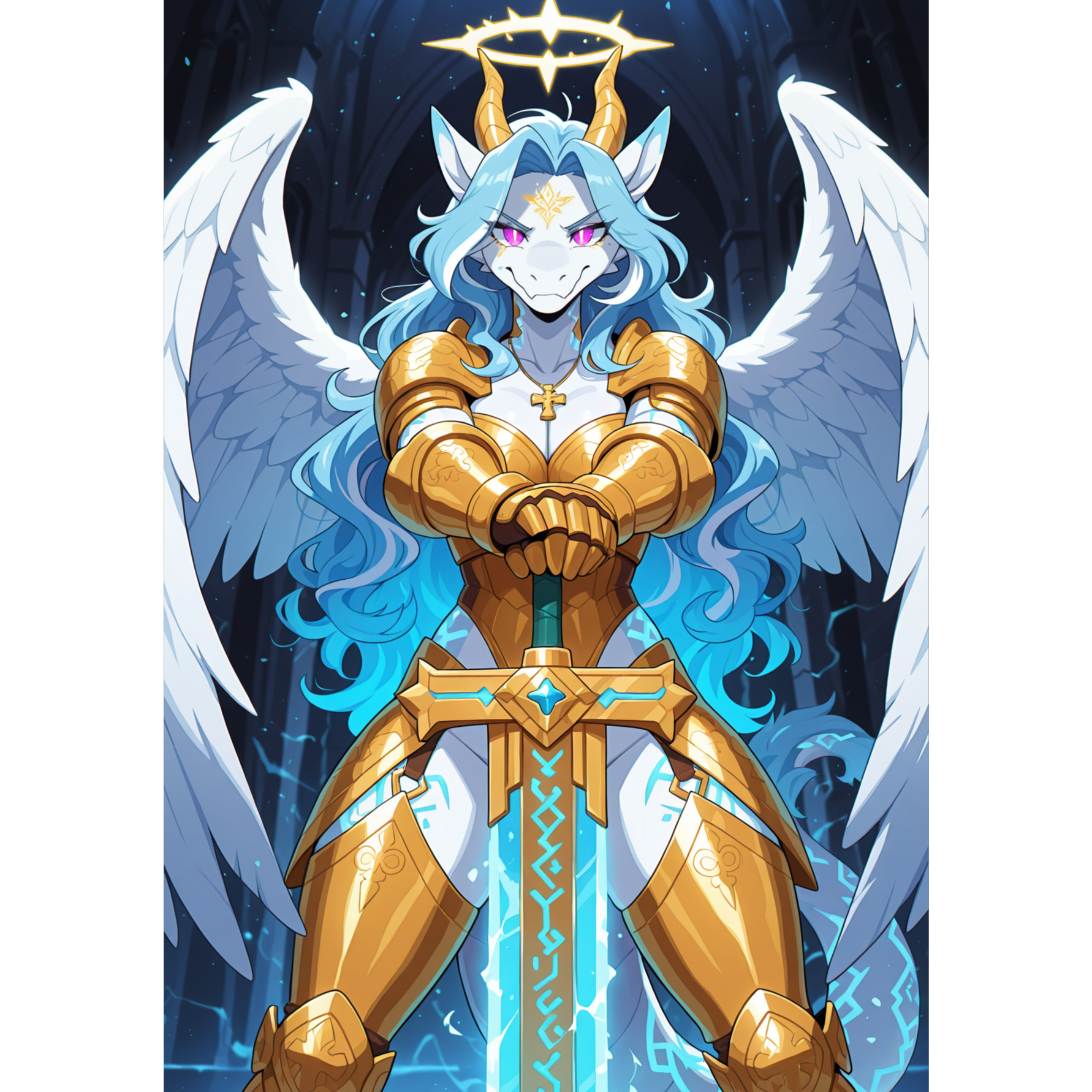Celtic power metal, Celtic folk, lead instrument Celtic flute, moderately fast tempo 130 BPM, Celtic beat, Celtic scales and modes, angelic and growling female vocals with a strong Scottish accent, soaring electric guitar, powerful Celtic drums, divine and ethereal riffs, soaring chorus with a half-time feel, Celtic flute solo, harmonic vocals, uplifting vibes, โviolin