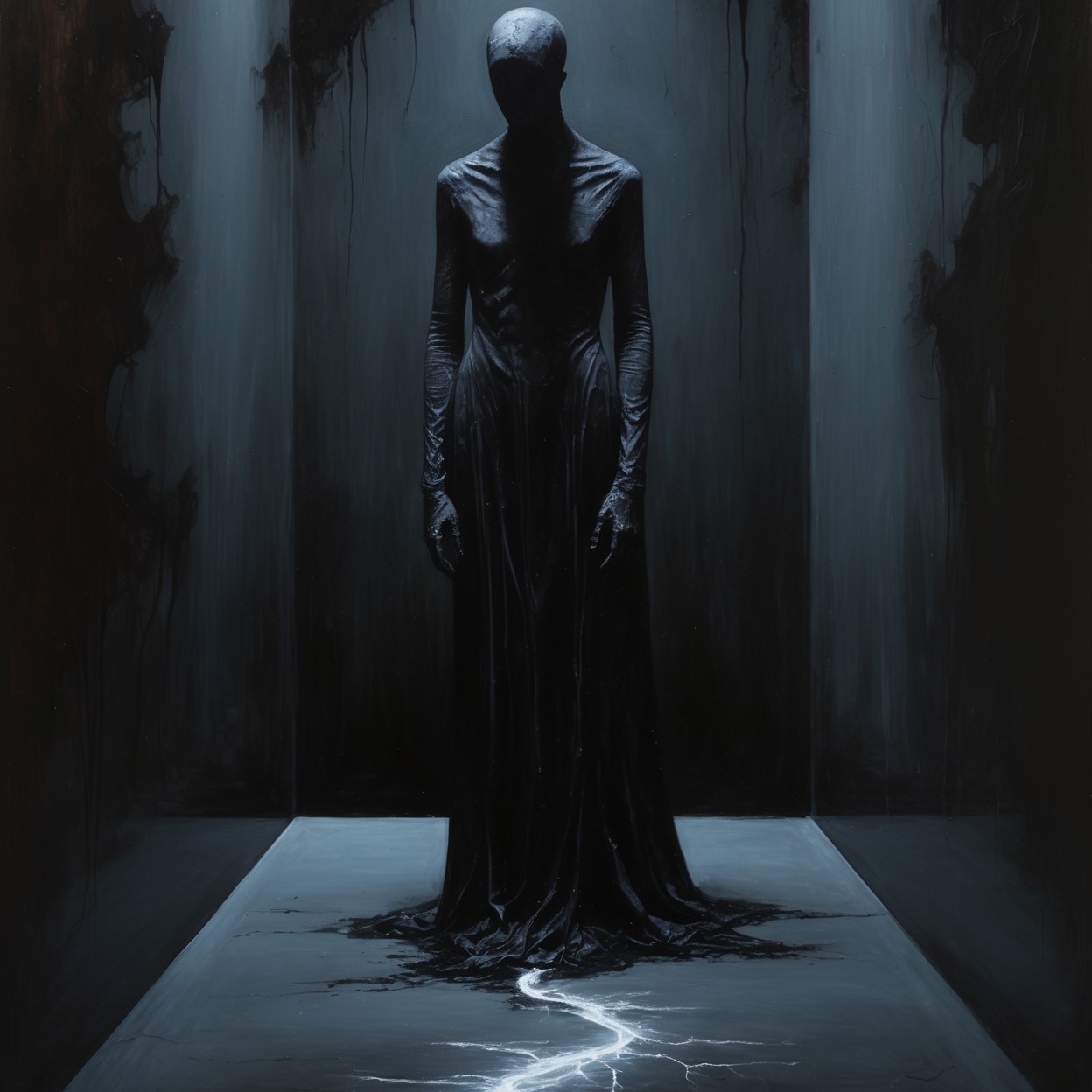Visual Atmosphere: suitcase on the floor, key on the table, storm-broken glass, horizon torn by lightning fire