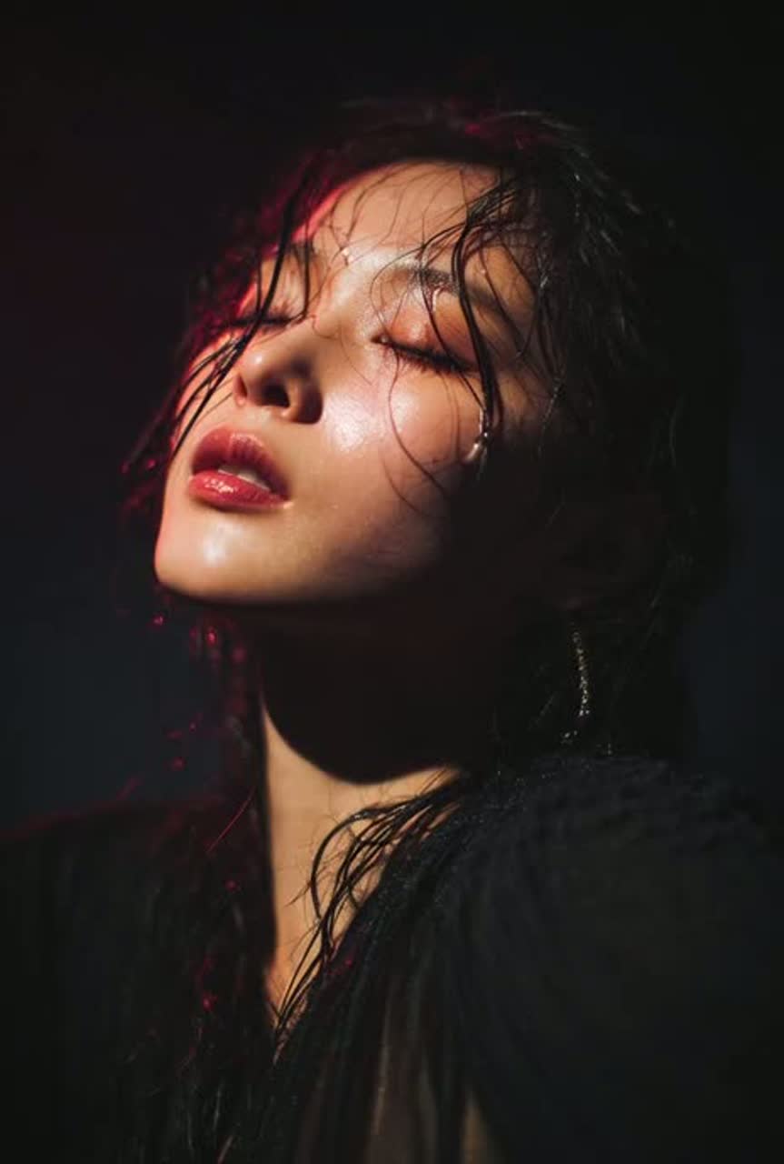 Track01: Female lead vocal, breathy whisper-to-belt dynamics, sultry low register with occasional high belt peaks, vocal fry texture in verses, controlled vibrato on sustained notes