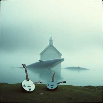 Appalachian folk × whale ambient × down-pitched chant over trap, 70–74 BPM (halftime; alt 140–148), swing ±3%, Mode: D or A Dorian (nat 6); avoid functional dominant; favor ♭VII, sus2/4, Banjo: sawmill gDGCD, clawhammer bum-ditty with pull-offs/brush/rolls or simple drone; 12-bit, wow/flutter 0, 6–1, 0%, Chant: male unison, wordless vowels, −5…−7 st, formant −2, no vibrato; long melismas; chapel IR, pre-delay 40–70 ms, RT60 2, 5–3, 5 s; HPF 90 Hz, Whales: granular pad (80–120 ms, 10% jitter) on 1–♭3–4–5–♭7; BP 40–80 & 300–600 Hz; sidechain 3–4 dB, Trap: 808 slides (1→♭7, 1→2), rim/snare on 3, hats 1/16 with 1/32/1/24 stutters; sparse ghosts, Harmony: pedal i→♭VII; natural 3 as passing color, Form ≈1:45: Intro whales+LPF chant → Drop A banjo+beat → Break drone/chant solo → Drop B counterline, bigger 808 → abrupt end on 4 or ♭7, Mix: LPF ≈8 kHz; banjo ±30°, chant C, whales wide; glue 2:1 (−2 dB); master −9 LUFS, −1, 0 dBTP, Constraints: monophonic chant; no V→i; modal drone; banjo micro-push