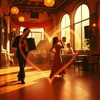 Male vocals, bright rhythm, rhythm of a beautiful tango, tango-jazz, sparse piano and strings, with a crescendo leading to a minor key