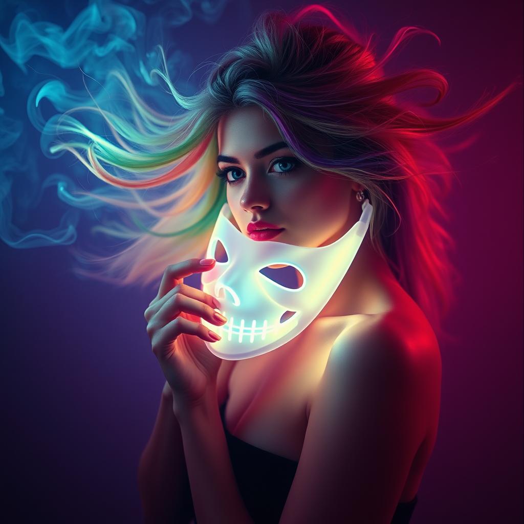 hyper rap, Futuristic hybrid of sleek electro and playful hip‑hop; rubbery bass and neon synth stabs over smoky, syncopated drums, Female vocals up close and breathy in the verses, sly and half‑whispered, with distant, pitch-shifted echoes answering like a mischievous conscience, Hook opens into layered harmonies and chant-style backing, finger snaps and subtle vocoder doubles, Energy teases and releases: tight, minimal grooves in verses, then wider, brighter choruses with sly risers and filtered drops, hip-hop, electronic, female vocals, smooth ending drop off