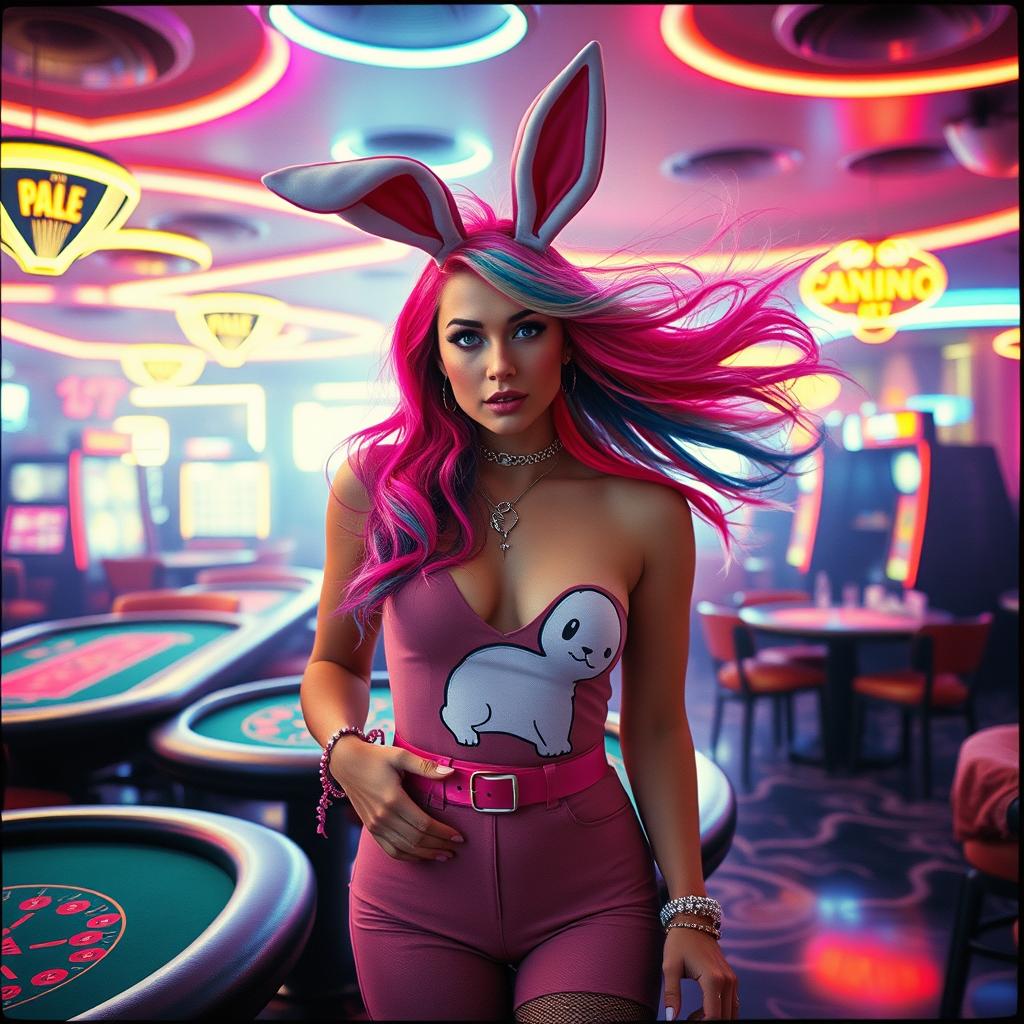 rap, Female vocals over glitchy electro-hop drums and distorted rock guitars; verses ride a sly, low-slung groove with whispered doubles and snapping percussion, choruses bloom into wide synth pads, octave vocals, and echoing gang whispers, Smoky, sultry tone with playful sneers, vocoder textures on select phrases, and a middle-eight drop into half-time pulses, filtered kicks, and breathy ad-libs before slamming back into the final hook, female vocals, rock, hip-hop, techno, electronic