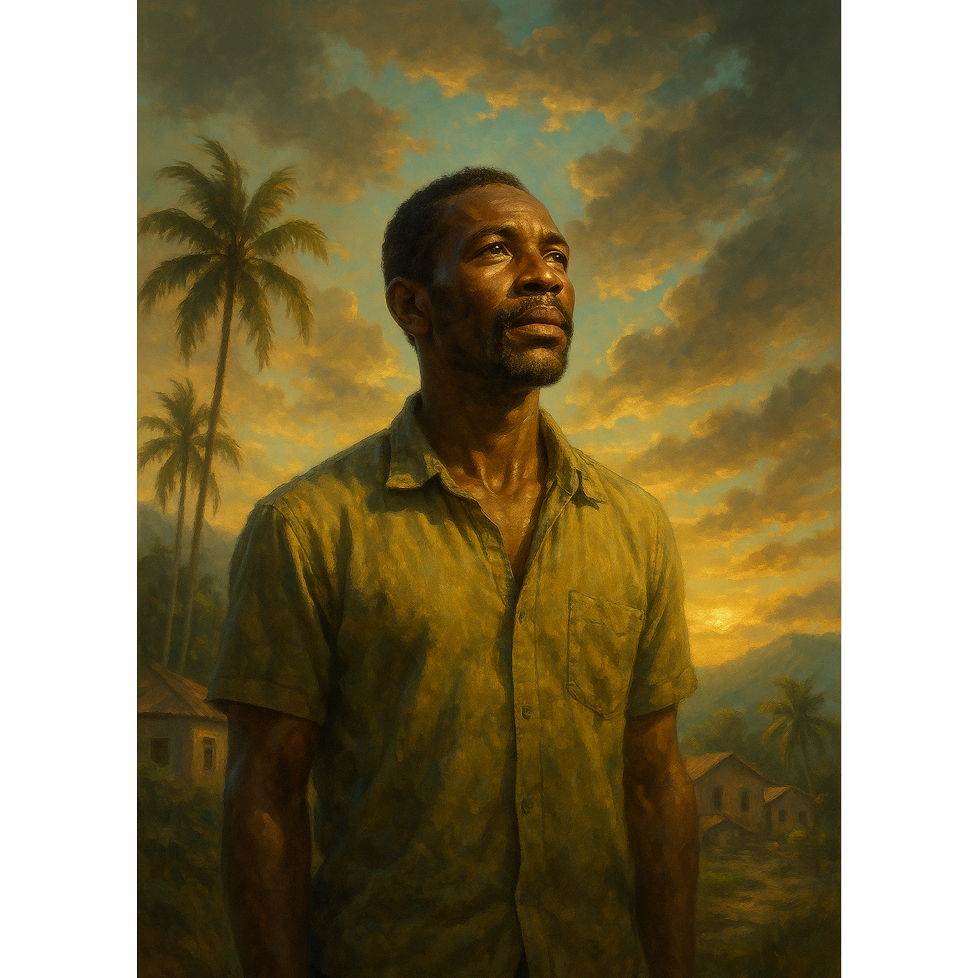 Authentic roots reggae in the style of 1970s Kingston, Deep bass groove, one-drop drum rhythm, offbeat skanking guitars, and warm vintage organ, Male lead vocals with soulful backing harmonies and Nyabinghi percussion, Uplifting and spiritual, inspired by unity, freedom, and love, Tempo around 85 BPM, Tropical, emotional, full of roots energy