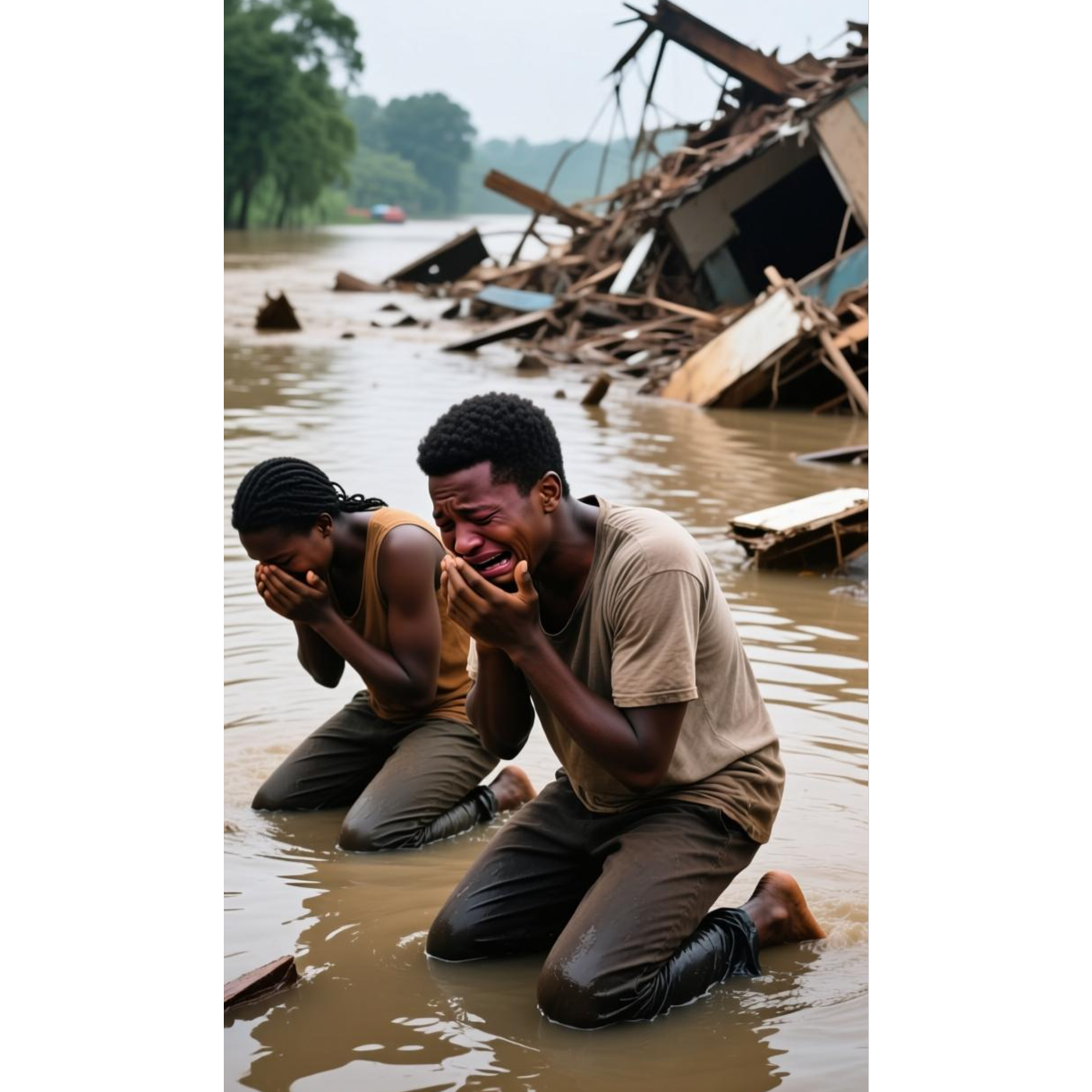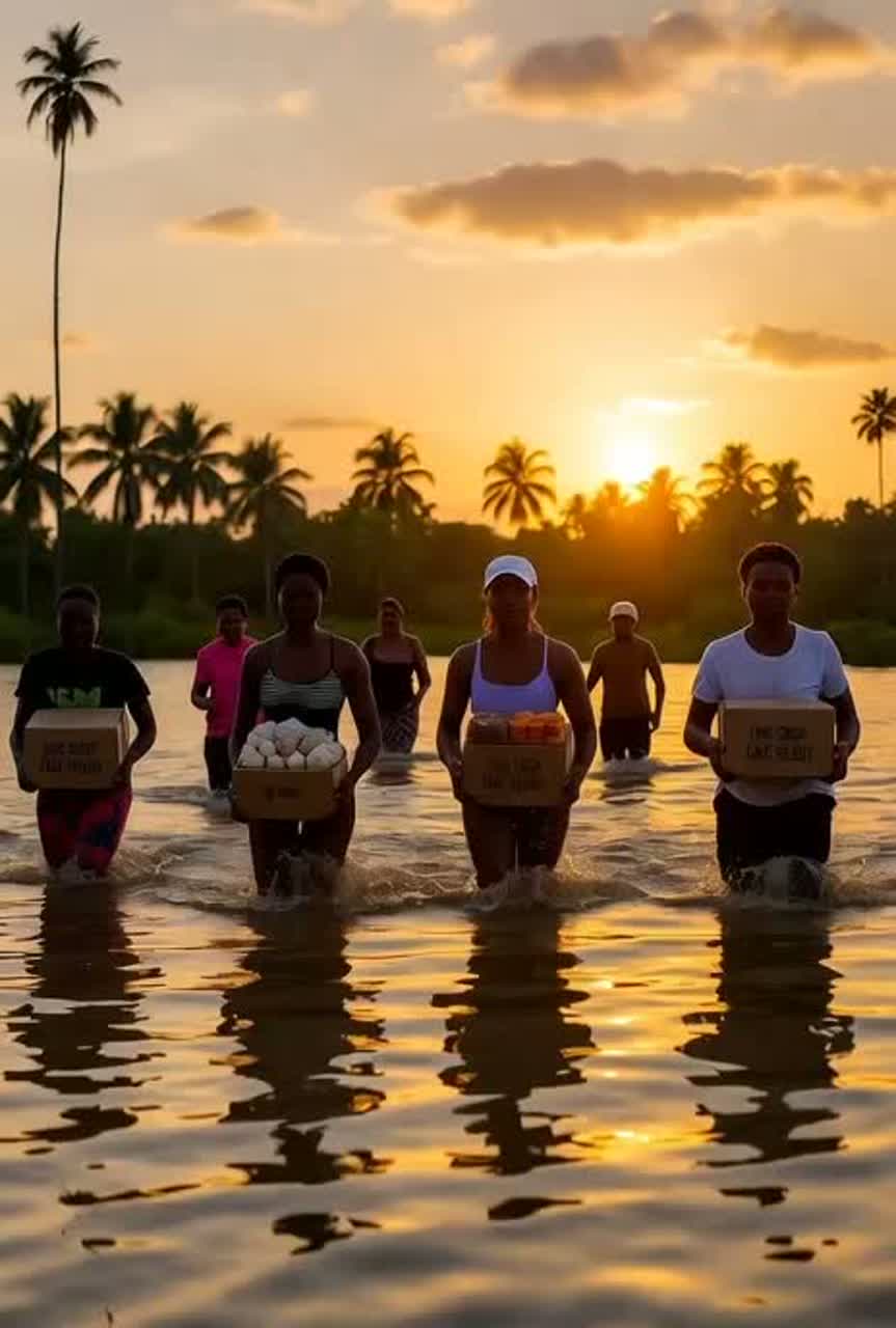 inematic world-soul anthem blending reggae-inspired percussion and gospel-swell vocals, Style: emotional world-pop × cinematic soul × island percussion, Tempo: 100 BPM, Instruments: piano, steel drums, deep bass, strings, atmospheric synths, layered gospel choir, Vocal: soulful female lead with dynamic emotion, layered chorus harmonies, Mood: mournful yet defiant; grief giving way to radiant hope, Production: thunder samples, rain ambience fading into sunrise tones, heavy reverb on vocals, heartbeat-like kick drum through verses, uplifting modulation for final chorus, Sonic goal: evoke collective prayer and rebirth after the storm