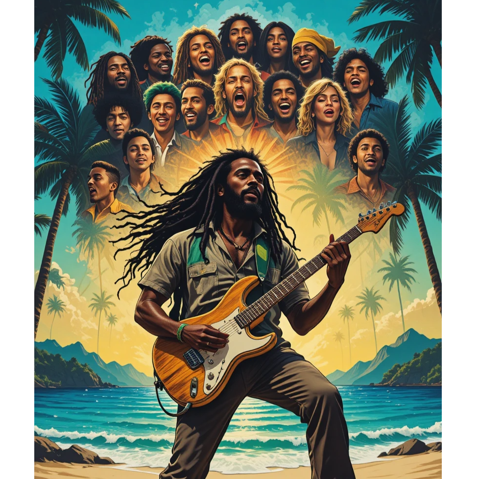 Roots reggae is a soulful, rhythm-driven genre born in Jamaica, known for its deep basslines, offbeat guitar skanks, and the iconic one drop drum pattern, It carries a laid-back groove with a slight swing, often described as “behind the beat, ” creating a relaxed yet powerful feel, The style blends organic instrumentation—bass, rhythm guitar, drums, organ (bubble rhythm), and percussion—with warm analog production that echoes the 1970s golden era, Vocals are heartfelt and conscious, often supported by rich harmonies, delivering messages of hope, unity, and resilience, Inspired by legends like, roots reggae is more than music—it’s a movement rooted in dignity, cultural pride, and social awareness, Songs in this style often use major keys like G or D major to evoke warmth and optimism, It’s a genre that uplifts communities, honors tradition, and invites listeners to reflect, heal, and stand together through adversity