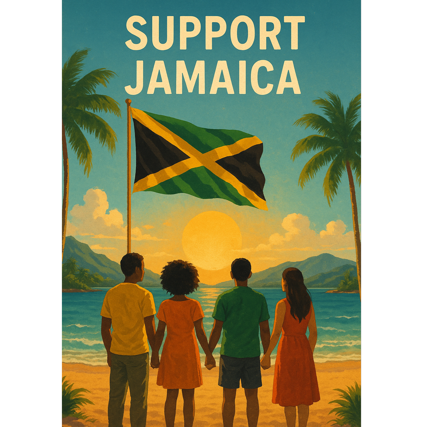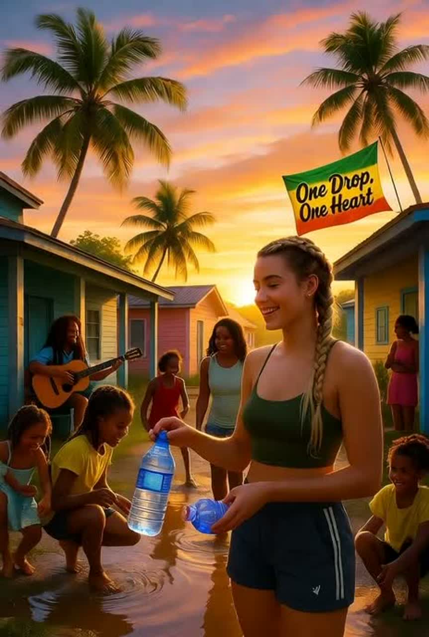 Smooth female vocal with soulful reggae feel and warm tone, Add gentle vocal ad-libs and harmonies (e, g, “yeah”, “oh Jamaica”, “one love”), Soft reggae / soul-reggae groove with tropical elements — warm bass, light guitarskank, soft percussion, airy synths, and gentle island breeze ambience, Emotional, soothing, hopeful — about unity, strength, and love for Jamaica after the storm, Tags: #ReliefOneDropOneHeartForJamaica #reggae #hope #unity #Jamaica