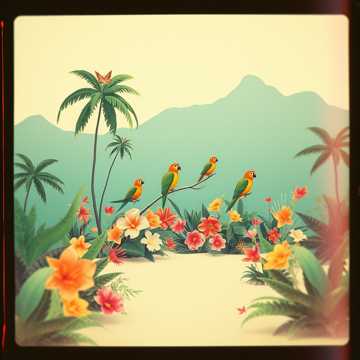 Ambience: Distant birdsong, gentle wind, subtle vinyl crackle for analog texture