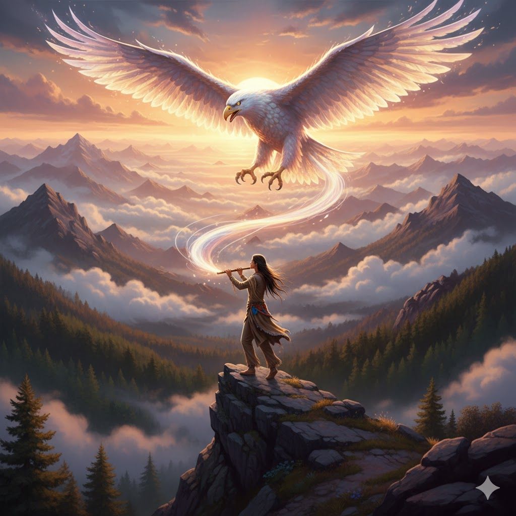 Native American Flute, Shamanic High-Altitude Ambient, 432Hz, Airy Green Noise, Shimmering Wind, Eagle Feather Whirring, Spacious 3D Echo, Haunting and Ethereal, Meditative, No Percussion