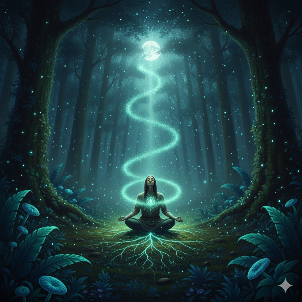 Style Box: Deep midnight jungle, 432Hz, slow rhythmic wind swells, breathing atmosphere, muted forest floor, wide 3D space, no sudden changes, no birds, organic emerald noise, smooth transitions, soft-fade nature sounds