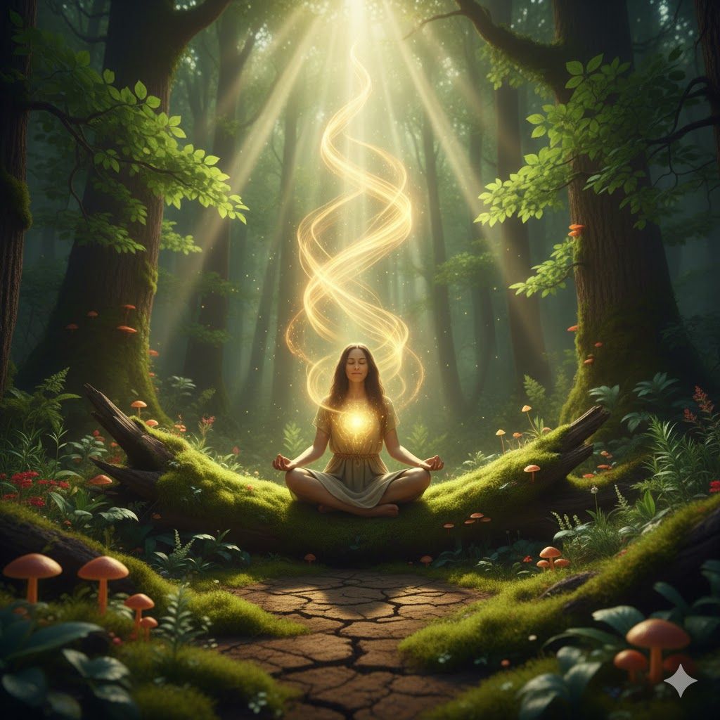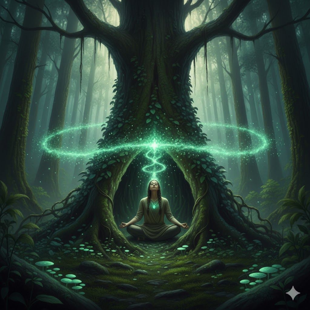Spoken word female monologue, Mature Native American woman, Deep soulful alto, Wise Grandmother persona, Low-frequency vocal humming, Melodic drone, 432Hz, 3D Spatial Audio, Warm Emerald Static, Cinematic and Grounding