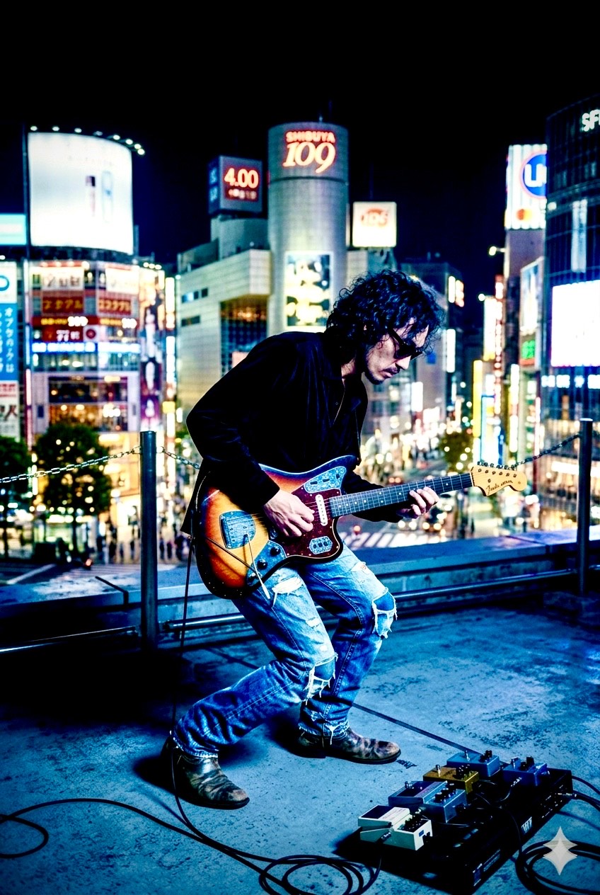 Japanese art rock style, Japanese male vocal, Japanese soul influenced, Mix: recording in club space, drone; 963Hz harmonic, Grove:Rock’n roll, Just intonation tuned 963Hz B standard