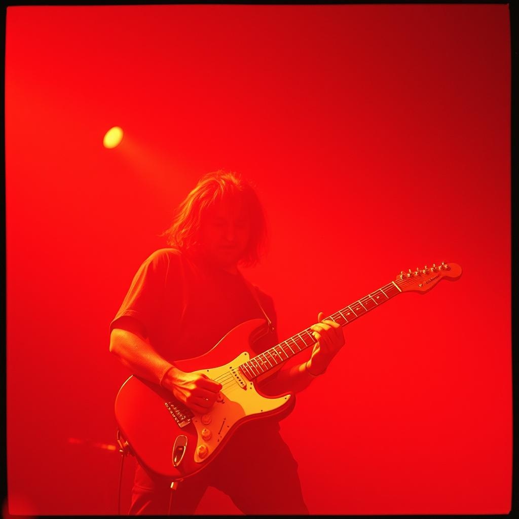 rock band of Seventies, drum, bass, lead and rhythm acoustic guitar, male voice, guitar impressive riff, chorus sad, nostalgic