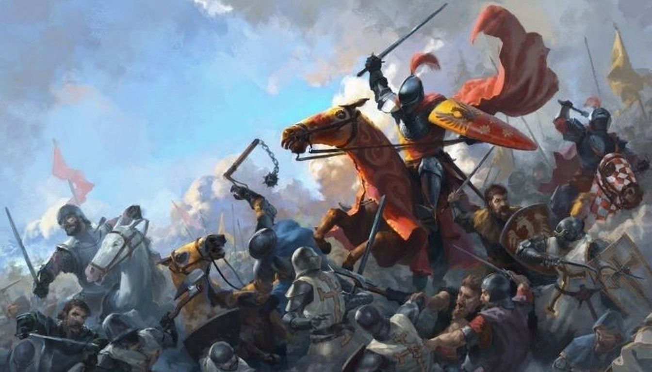 High-energy orchestral hybrid track blending classical instrumentation with modern cinematic production, The arrangement features a driving staccato string section providing a rhythmic foundation in a minor key at 140 BPM, Brass swells and sharp horn stabs accentuate the transitions, while a prominent harpsichord melody adds a baroque flair, The percussion is a mix of traditional orchestral timpani and crisp, modern electronic drum hits, creating a hybrid sound, The structure follows a build-up format, starting with a solo harpsichord and strings, then layering in brass and heavy percussion for a climactic finish, Production is polished with wide stereo imaging, lush reverb on the orchestral elements, and a punchy, compressed low end