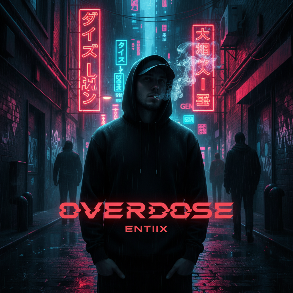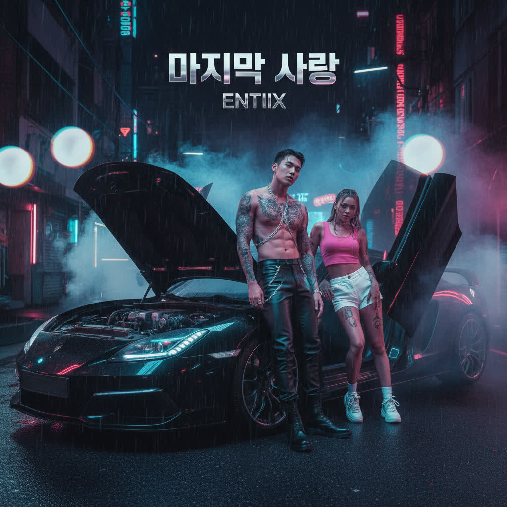 Y2K K-Pop x Dark-Pop Trap Fusion — moody, seductive, cinematic, Heavy 808s, sharp snare hits, reverb-washed electric guitars, distorted bass synths, filtered Korean vocals, auto-tuned harmonies, and layered whispers, Male vocals (dark, breathy tone, light autotune, K-pop phrasing), Production: glitchy synth stabs, digital textures, and pulsating sub-bass, Feels like 2000s Seoul nightlife meets cyber heartbreak — luxury, danger, obsession, Mood: seductive, mysterious, darkly addictive — like falling in love with something you shouldn’t