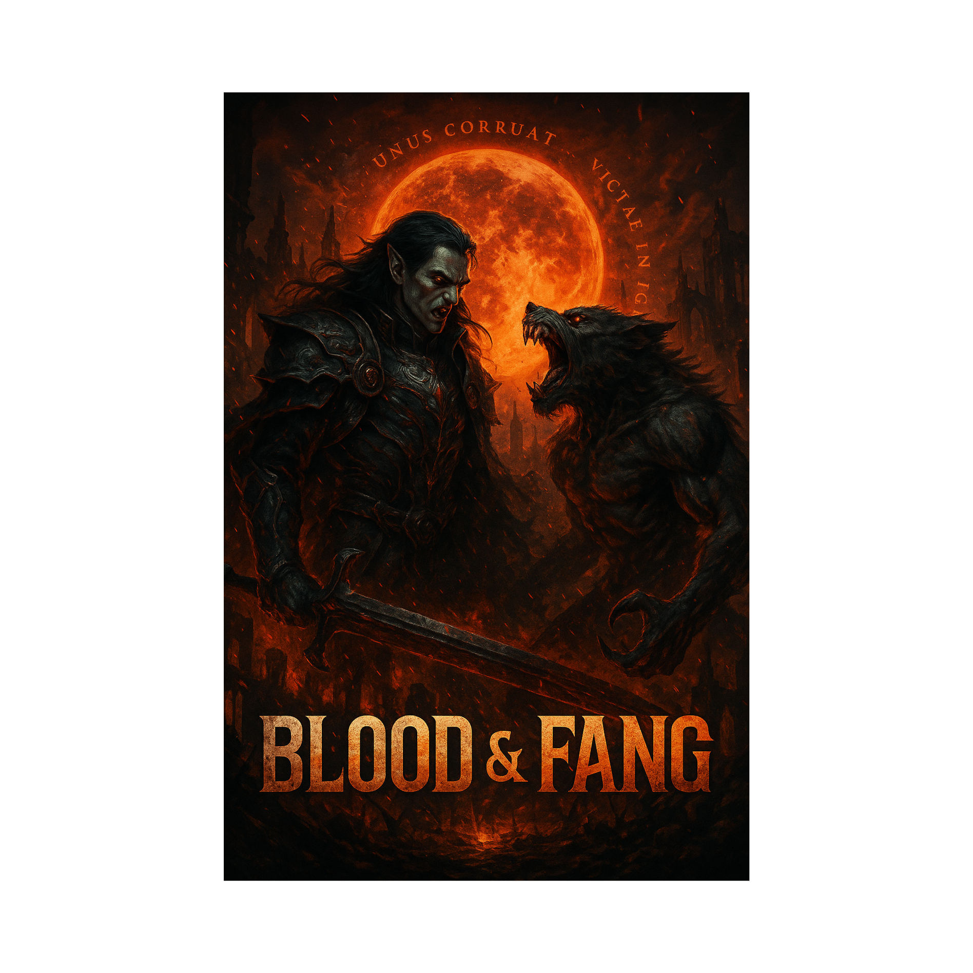 Vocals: Alternate between melodic vocals, cold male vocals (for the vampire perspective) and gritty, snarling male vocals (for the lycan), with layered Gregorian Latin chant phrases throughout, Include explicit, violent lyrical detail — flesh, blood, dismemberment, sacred violence, Tempo: 174 BPM — rapid, driving beat suitable for running or combat energy