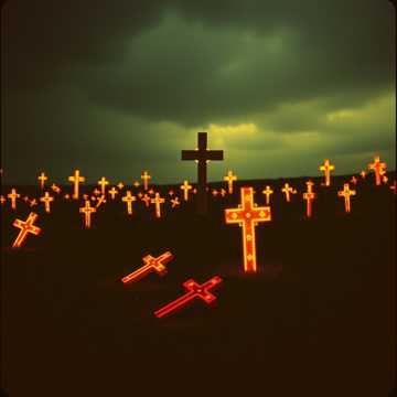 Instruments: Distorted guitars, orchestral brass, pulsing bass, militant drums, dark atmospheric synths, Latin choir
