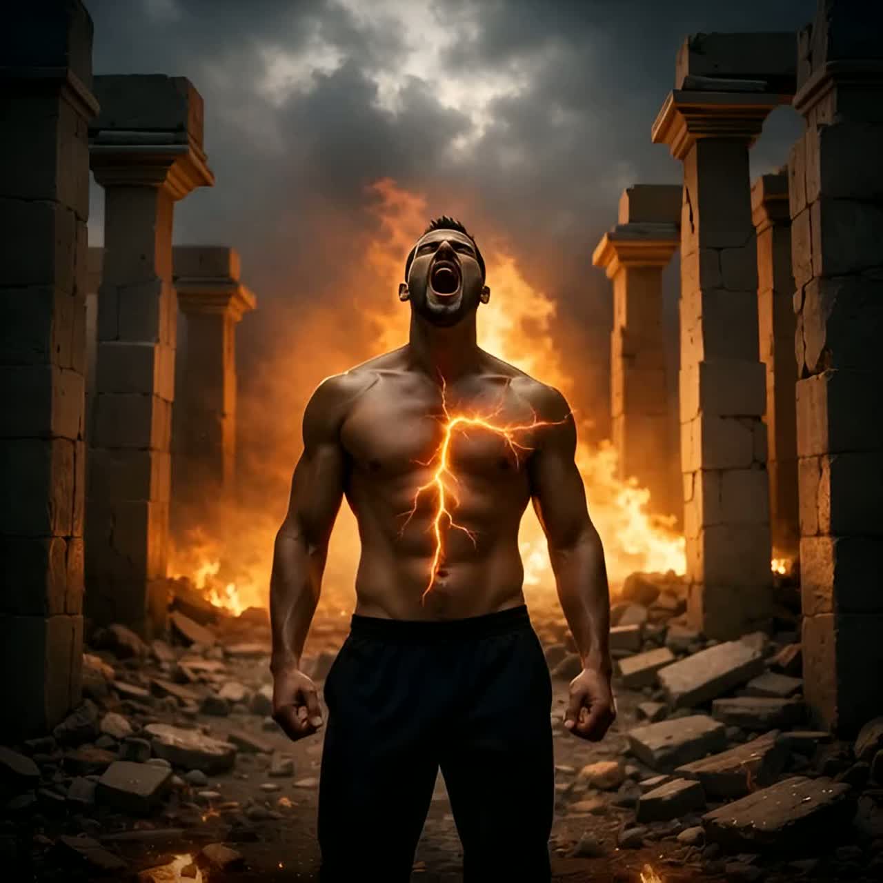 Cinematic rock, hard rock, emotional metal, orchestral hybrid, anthemic, epic drama, gritty vocals, mythic storytelling, rising intensity, whisper-to-scream dynamics, deep ambient layers, thunder fx, reverse reverb, bitcrushed glitches, heartbeat drums, storm atmosphere, melancholy verse, heroic chorus, climactic bridge, power-ballad structure, ghost echoes, atmospheric rock, cinematic drop, vocal build, orchestral fusion, modern trailer rock, emotional crescendo, haunting silence, male vocals