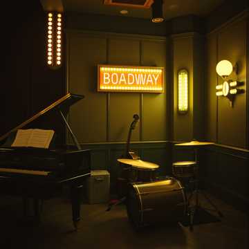 Vintage Broadway pit vibe: bright piano and upright bass driving the groove, brushed kit and clarinet flourishes, Big, brassy stabs punctuate punchlines; strings swell under the more sentimental lines, Female vocals with a wink, tight ensemble harmonies on the hook, and a key-change finale for that classic showstopper lift, broadway