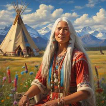 Traditional Lakota Native American ritual chant, focusing on vocal timbre, texture, spatial placement, and instrumentation, without modern or electronic sounds, Vocals: Voice 1: Elderly woman, fragile, high-pitched, raspy, gentle vibrato, slow phrasing, Kikimela: Deep chest voice, strong resonance, sustained low notes, slow attack, Talah: Ethereal reverb, flexible pitch, glottal accents, haunting legato, dynamic contrast, Iukta: Young, bright, advanced placement, clear diction, moderate vibrato, agile melodic runs, Choir: Collective, reverb, various voices, moderate volume, sustain, ritual reinforcement, Instruments and Soundscape: Frame drums, hand drums, rattles, flutes, minimalist percussion, ambience, fire, crackle, footsteps, wind, natural environment, Spatial and Production Cues: Circular arrangement, shamans in the foreground, choir behind the instruments, Blended textures, naturally layered, slow crescendos, decrescendos, call-and-response ritual rhythm, Style: ancient ritual animist