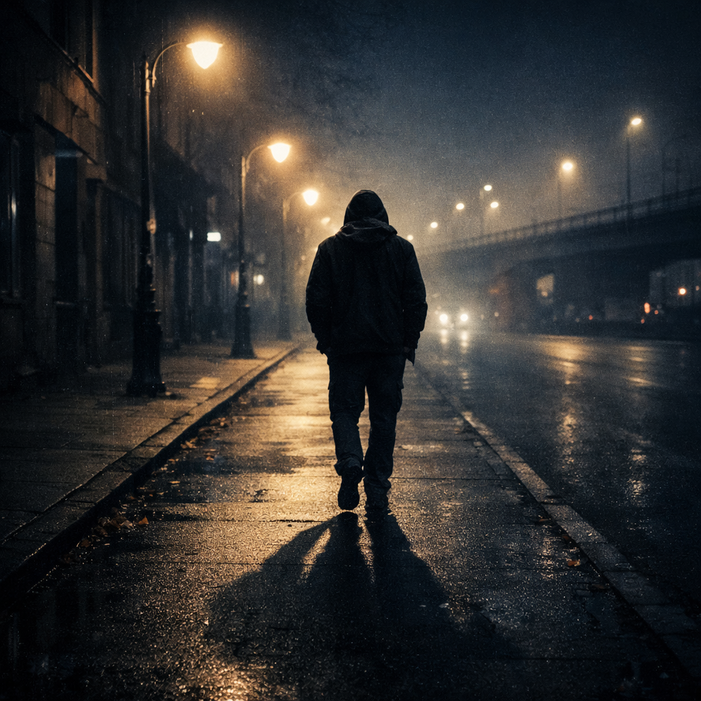 A hip-hop track with a dark, atmospheric, and slightly melancholic mood, The song features a male rapper with a clear, rhythmic delivery, The instrumentation includes a prominent, sustained synth pad creating a haunting atmosphere, a deep sub-bass providing a strong low-end foundation, and a simple, consistent drum beat with a kick, snare, and closed hi-hat, A subtle, high-pitched synth melody occasionally weaves through the background, The tempo is moderate, and the key appears to be minor, contributing to the overall somber feel, The production is clean with a focus on the vocal clarity and the atmospheric synth textures, The song structure is verse-based with no distinct chorus, maintaining a continuous narrative flow, The vocal delivery is mostly spoken-word rap, with some melodic inflections at the end of phrases, There are no significant dynamic changes, maintaining a consistent intensity throughout