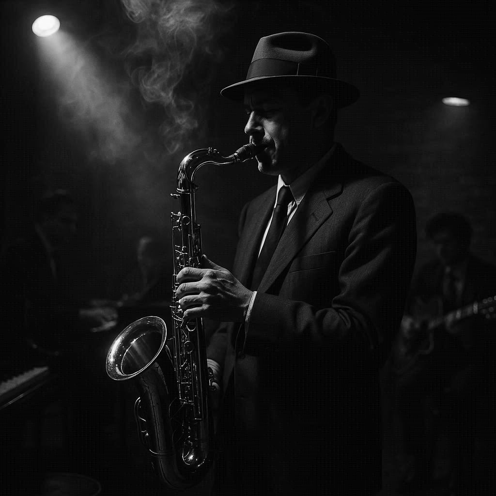 Blues rock, emotional guitar, male vocals with a raspy tone, slow groove, soulful bass, reflective mood, saxophone