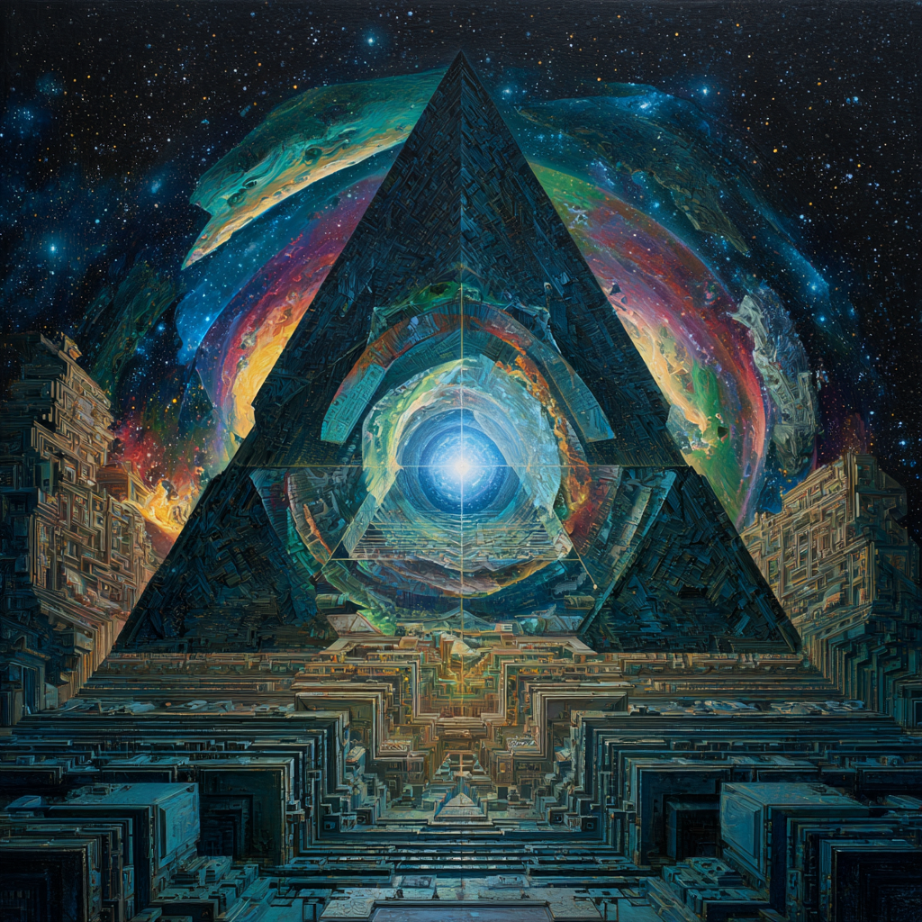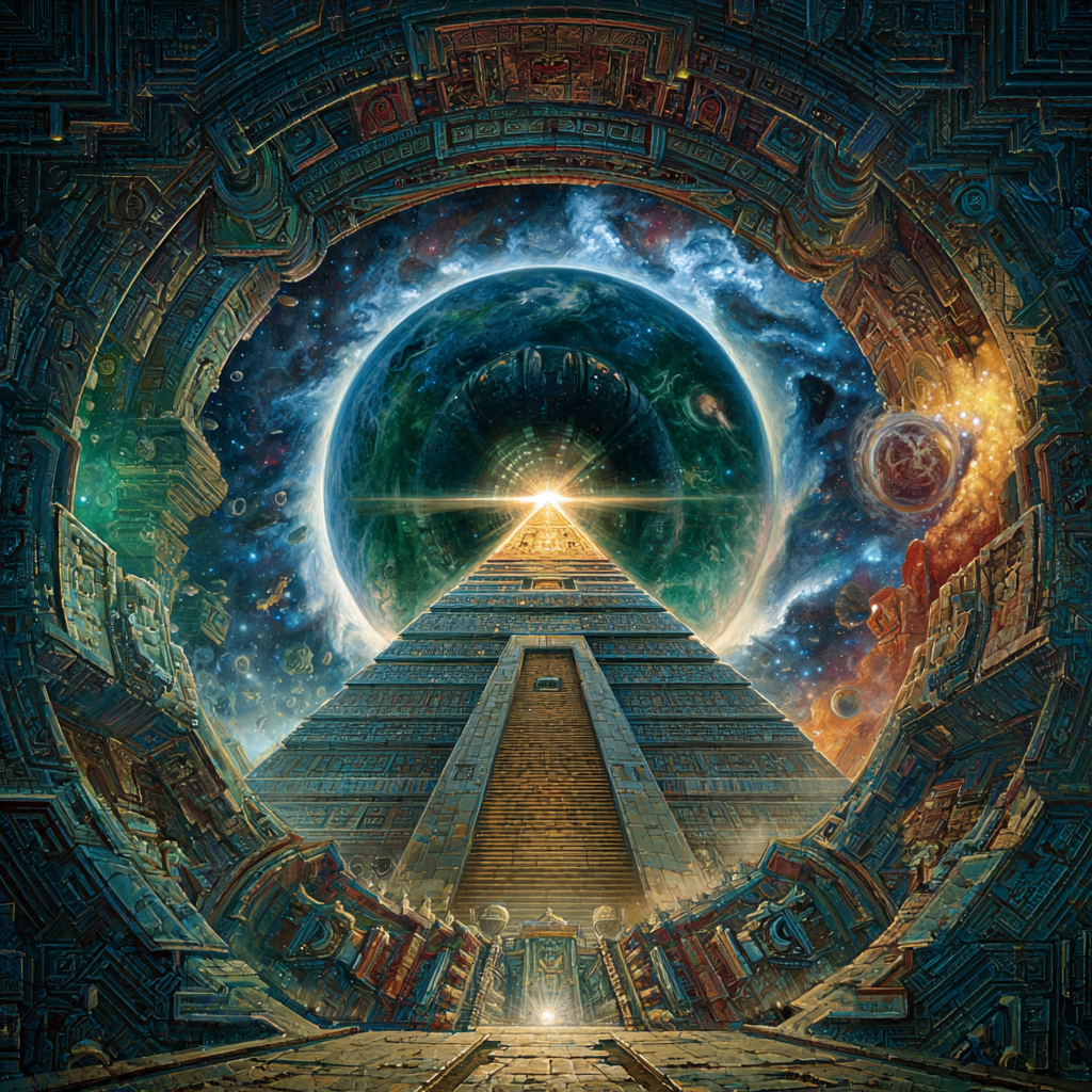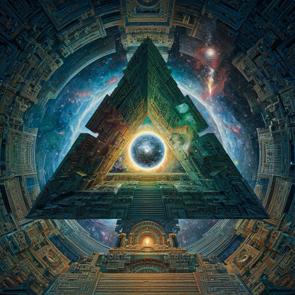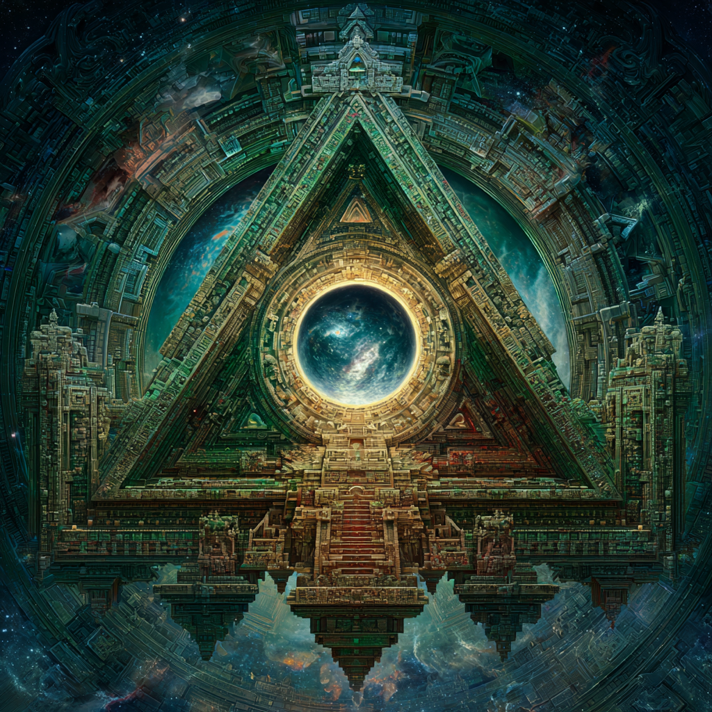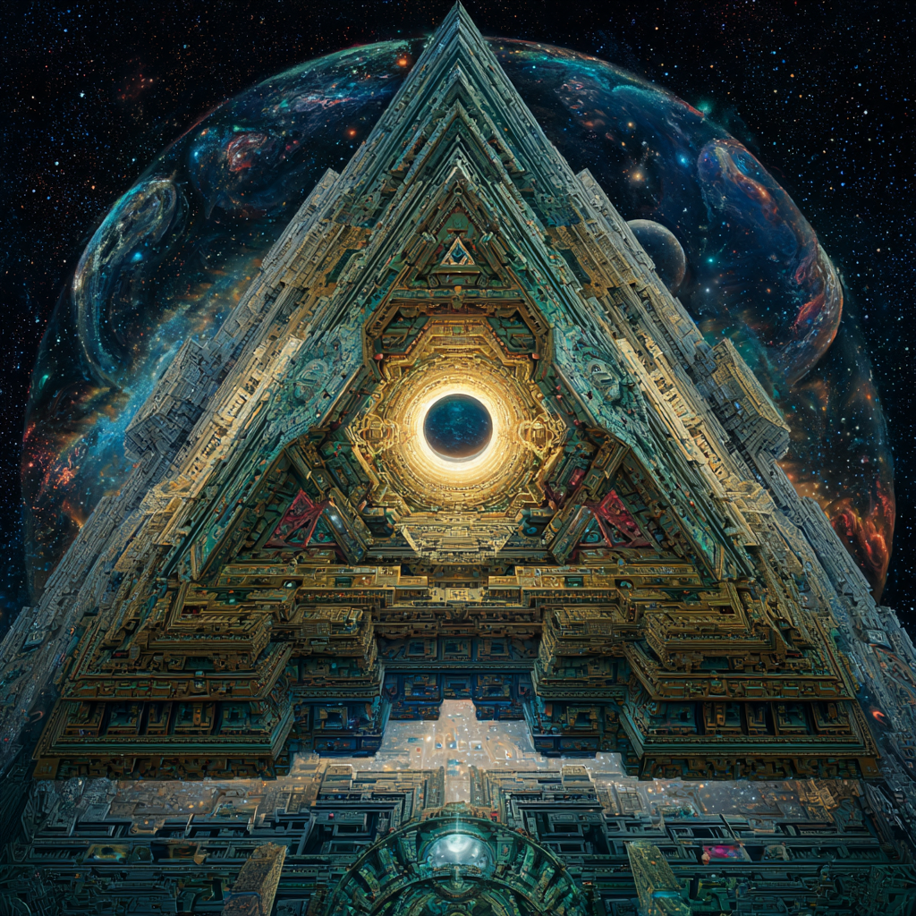 Experimental slow space music, polyphonic madrigal structures reimagined through analog synthesizers, Cosmic music, space music harmonies, Intricate tribal drum patterns, Intricate layered electronic textures maintaining Renaissance counterpoint principles, Lute-like arpeggios generated by sequenced synthesizers, Ornate, mathematically precise composition blending period authenticity with futuristic sound design