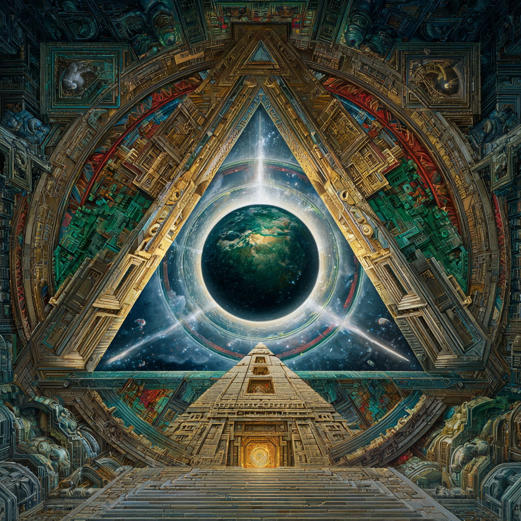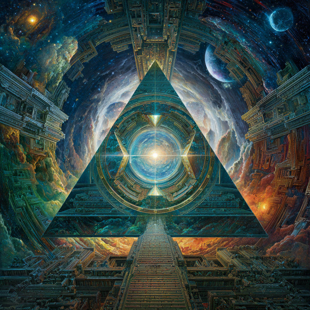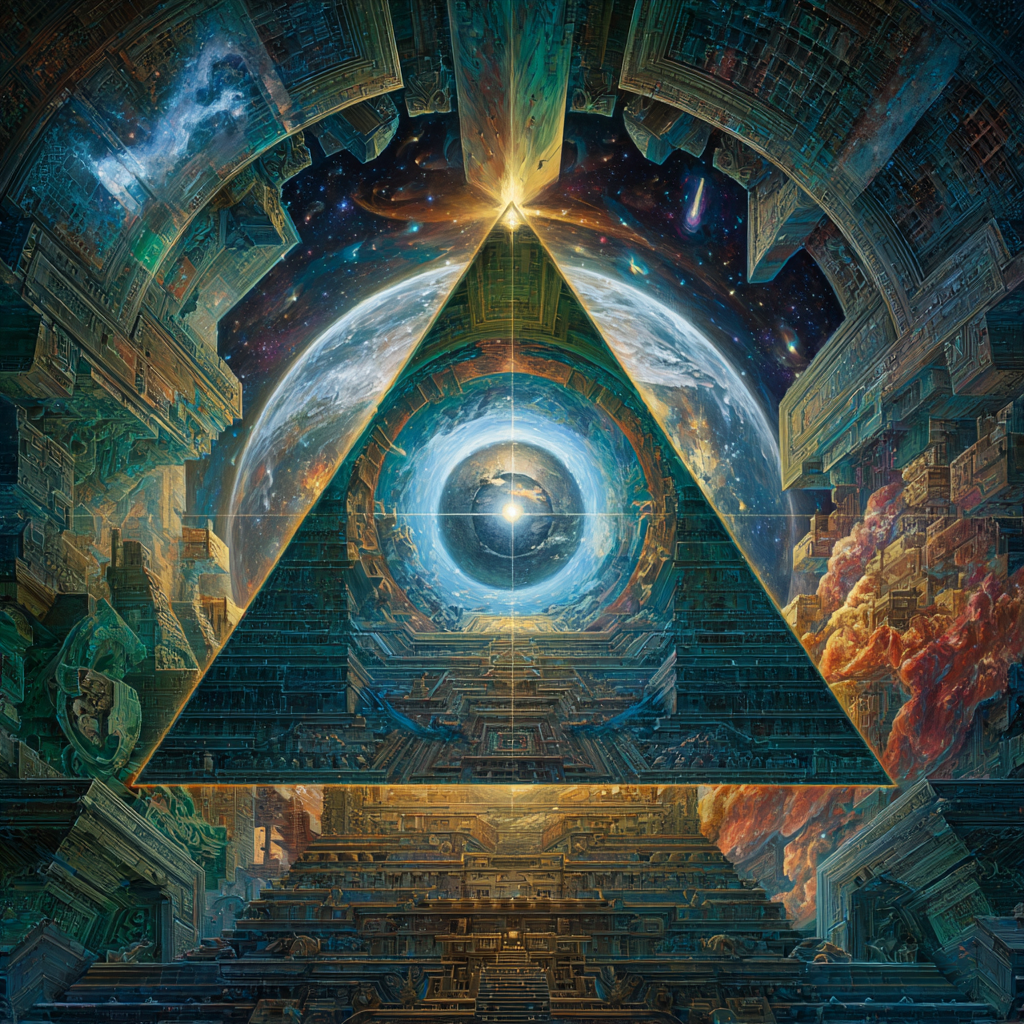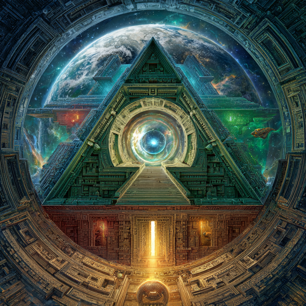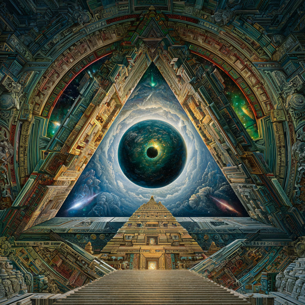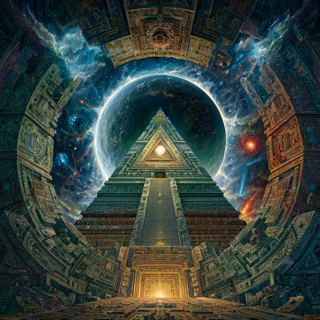 Experimental slow space music, polyphonic madrigal structures reimagined through analog synthesizers, Cosmic music, space music harmonies, Intricate tribal drum patterns, Intricate layered electronic textures maintaining Renaissance counterpoint principles, Lute-like arpeggios generated by sequenced synthesizers, Ornate, mathematically precise composition blending period authenticity with futuristic sound design