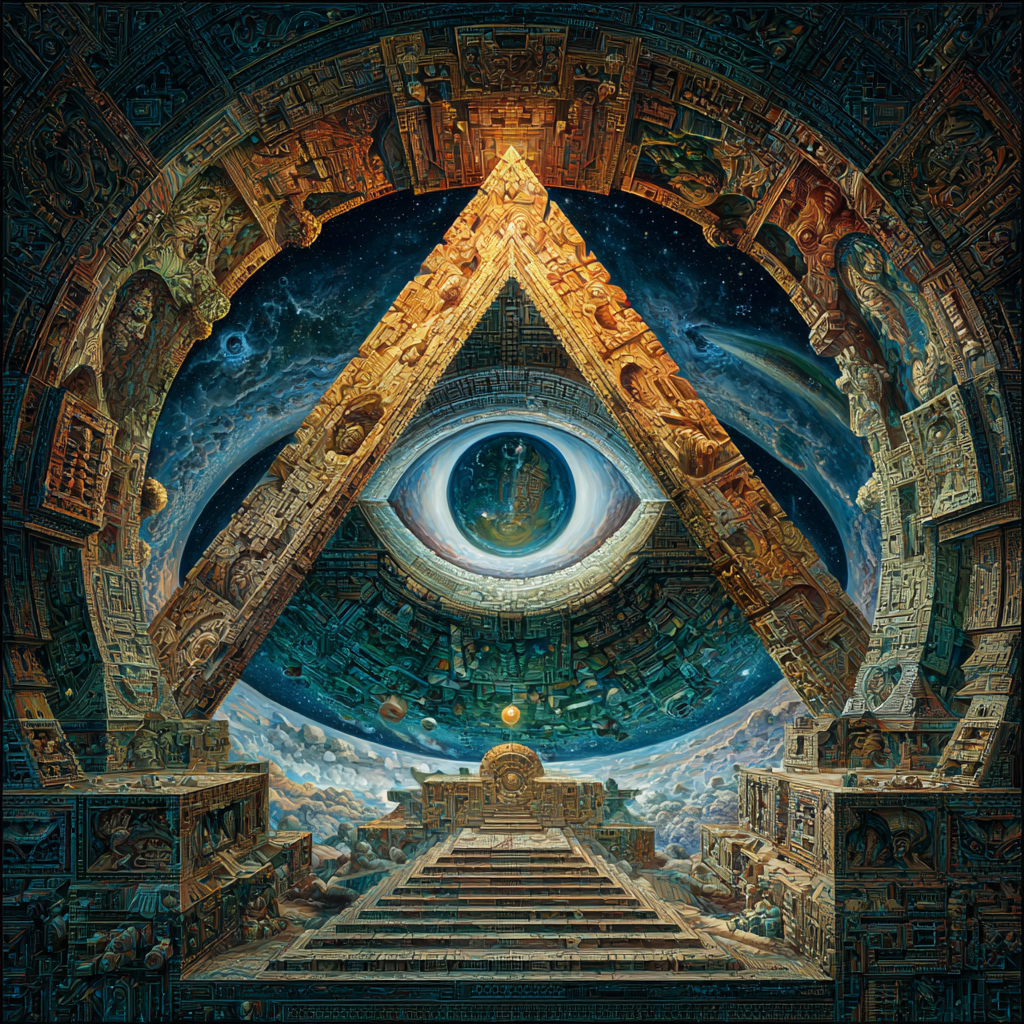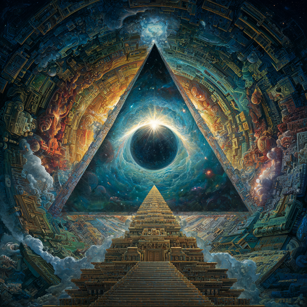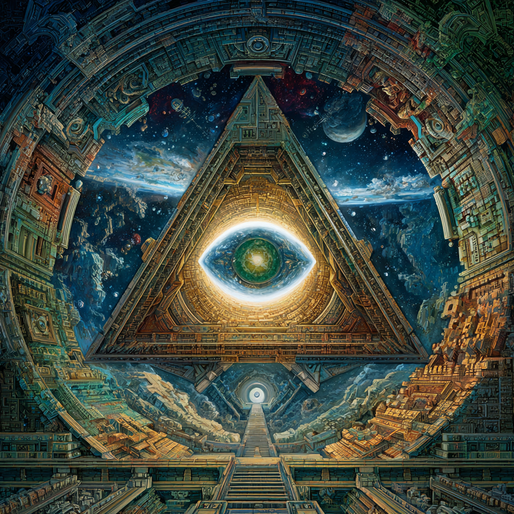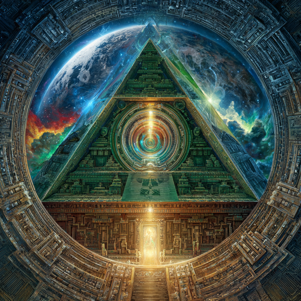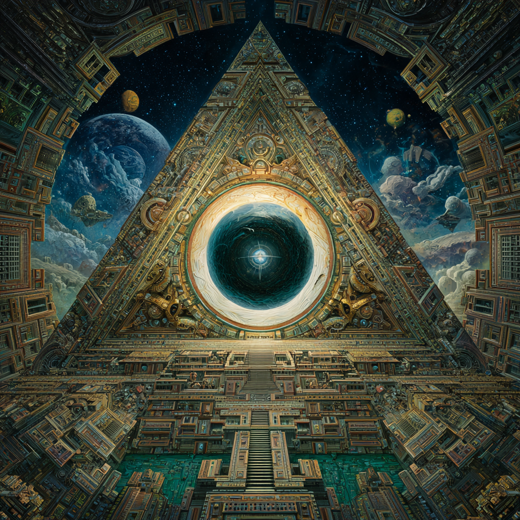Experimental slow space music, polyphonic madrigal structures reimagined through analog synthesizers, Cosmic music, space music harmonies, Intricate tribal drum patterns, Intricate layered electronic textures maintaining Renaissance counterpoint principles, Lute-like arpeggios generated by sequenced synthesizers, Ornate, mathematically precise composition blending period authenticity with futuristic sound design