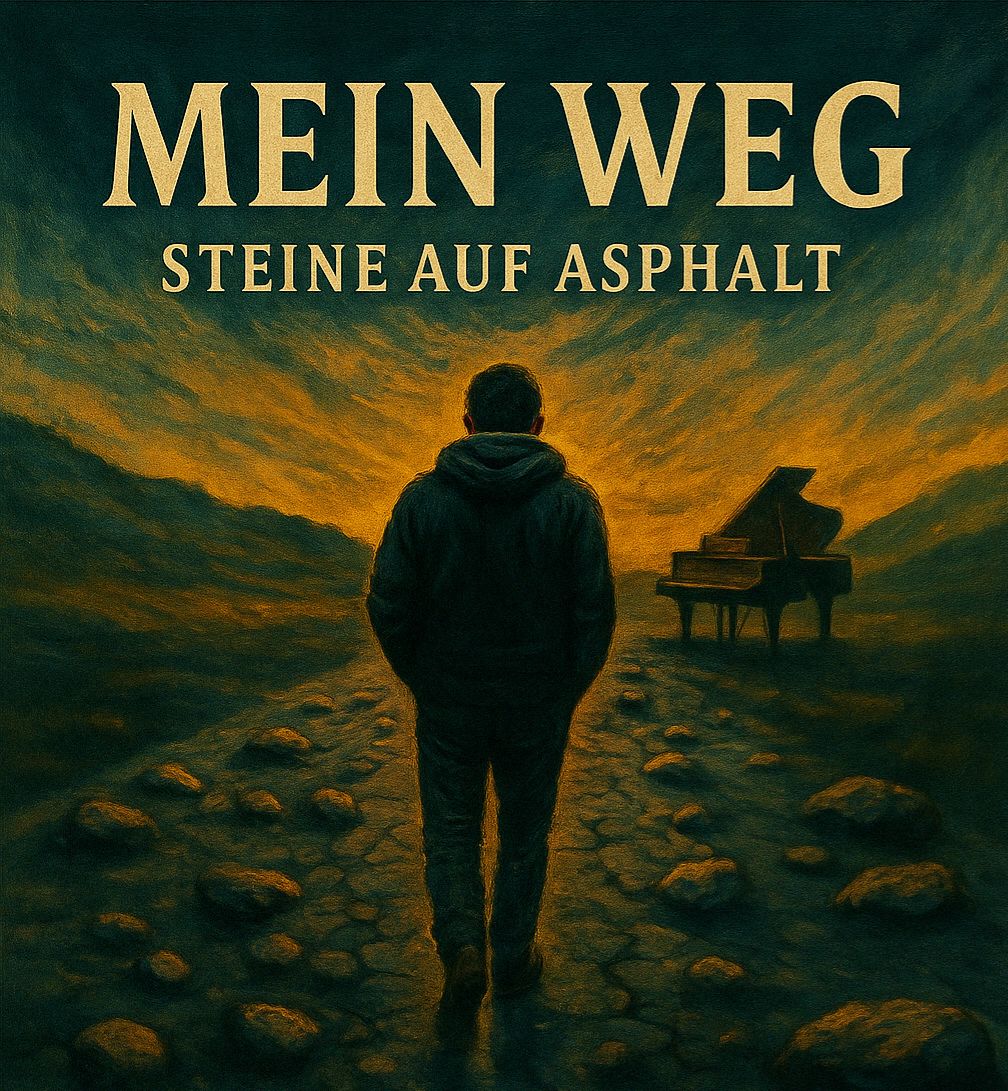 Male vocals, grand-piano driven, jazz-blues fusion with subtle hip-hop elements, orchestral piano touches, emotional, raw, authentic, deeply expressive, soulful, storytelling, fragile yet commanding, intimate whisper for intros, smooth crescendos for hooks, powerful but controlled delivery for choruses, spoken-word style for narrative parts, German vocals, every word clearly articulated, no mumbling, vulnerable yet strong, subtle strings and soft drums, cinematic, immersive, conveys struggle, hope, and resilience, perfect for first-person introspective storytelling, preserves the raw energy and emotional depth of the lyrics, natural phrasing with pauses and breathing space