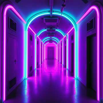 Atmosphere: cinematic nostalgia, neon void, cosmic resonance