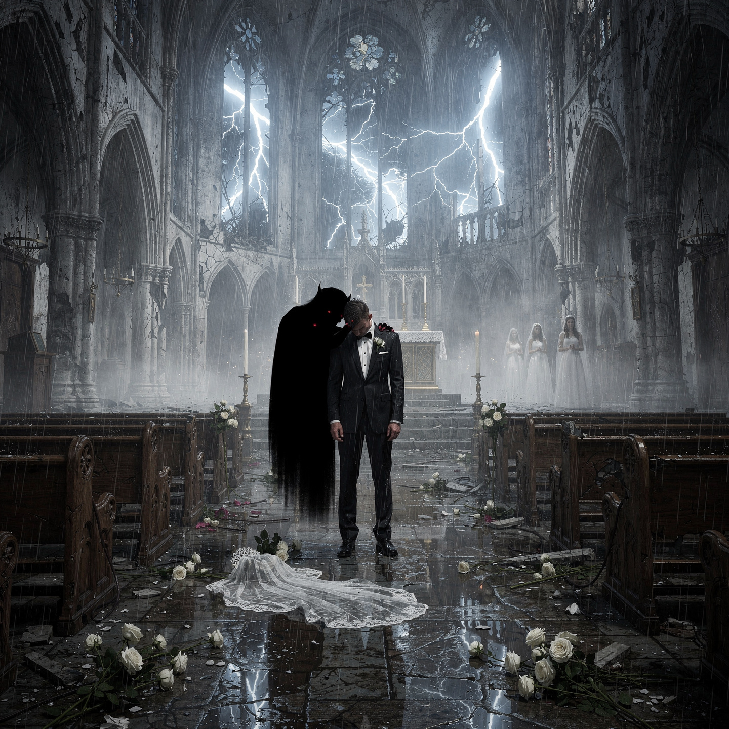 A male-fronted dark metalcore/post-hardcore track merging brutal down-tuned riffs and punishing drums with gothic, industrial textures: dense synths, eerie pads, and tolling bells haunt the verses, Contrasting breakdowns and melodic bridges set up an outro of soaring leads dissolving into dissonance