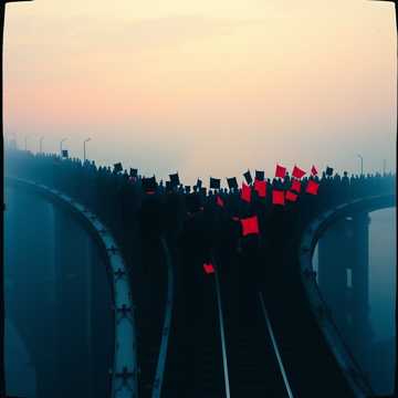 Upbeat ska-punk protest anthem, Fast tempo, bouncy happy guitars on the offbeat, punchy bass, energetic live drums, bright brass section hits, gang vocals, Humorous but angry vibe, chant-friendly hooks, call-and-response “hey hey” shouts, short chorus built for crowds