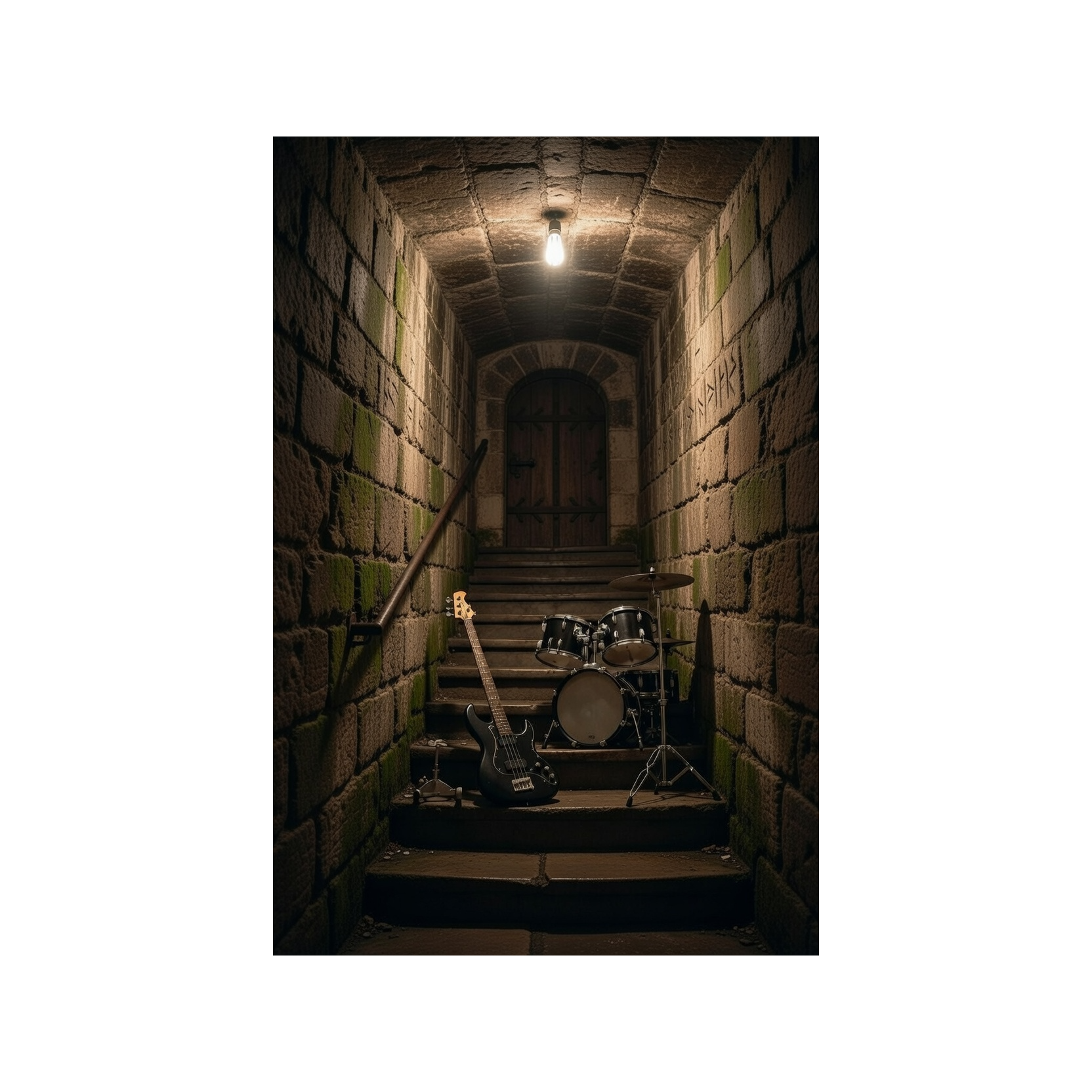 Mid-tempo heavy groove doom with humorous dark vibe, Thick low-tuned guitars playing simple rhythmic riffs with slight psychedelic echo, Strong warm bass leading groove together with punchy kick, almost dancing but still heavy, Subtle ambient reverb like basement room acoustics, small analog synth pads for space, no orchestral, no extreme metal speed, Mechanical head-nod rhythm, repetitive and catchy, Vocals: deep male baritone, calm and slightly ironic attitude, Verses half-spoken, rhythmic storytelling delivery, Pre-chorus shorter phrases building tension, Chorus louder, catchy and chant-like but not screamed, layered backing voices for fun energy, Mood playful-dark, confident, relaxed, as if narrator enjoys the noise he makes, Clean articulation, no growl, no scream