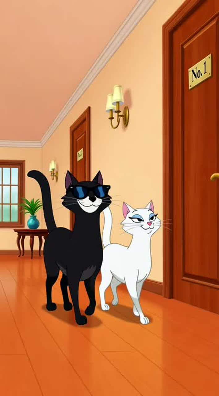 Funky Upbeat Folk-Pop, bouncy acoustic guitar rhythm, playful walking upright bass, light hand percussion and shakers, male vocals with a charismatic wink and humorous tone, intermittent cat sound effects (meows and deep purring), 105 BPM, warm community atmosphere, bright and crystal clear production, playful vibe like a classic animation soundtrack