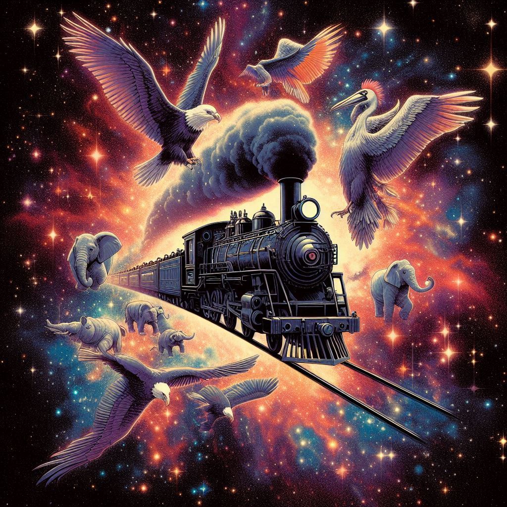 A fusion track combining 1940s swing with brass band and death metal elements, A sharp snare and tuba drive a march-like rhythm, Brass riffs swap syncopated hooks; minimalist piano and sax repeat patterns, creating tension, Bold tutti surges and bursts of distorted guitars intensify the dynamic form