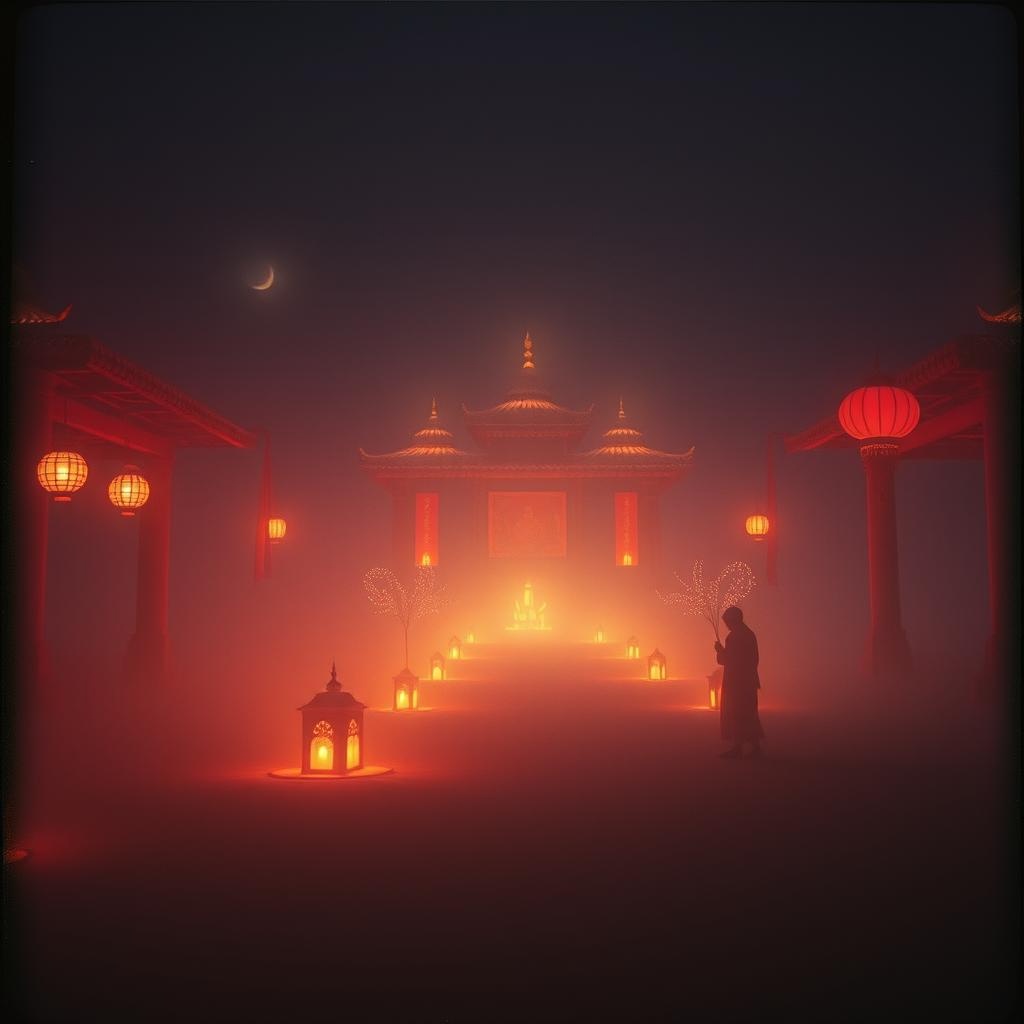 "Slow ballad featuring harp, lyre, and subtle vocals with echoes, evoking an ancient and sacred atmosphere, "