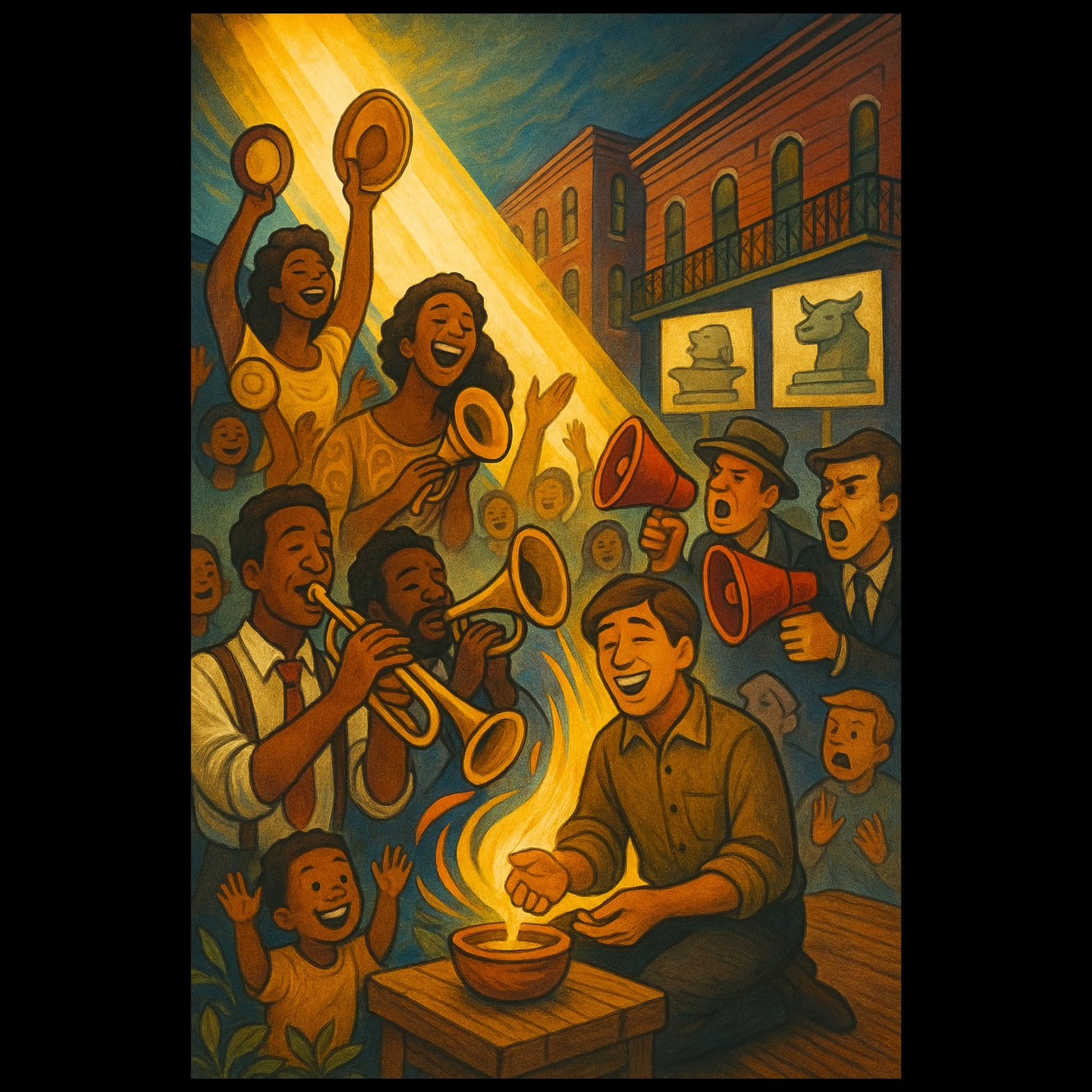"Uplifting gospel anthem with a powerful choir and rhythmic clapping, celebratory and bold, "