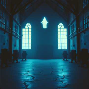 Dark, theatrical alt-metal with a slow-burning pace (around 90–100 BPM), Haunting, Eastern-influenced guitar melodies with heavy, sustained chords, Tribal drums and staggered tom hits, occasionally erupting into frantic fills, Bass is thick, gritty, crawling beneath the riffs like tension, Vocals drift between soft-spoken verses, operatic cleans, and sudden bursts of distortion or screams, Lyrical content leans surreal, political, and spiritual—poetic chaos, whispered warnings, and visions of a broken world, Imagine System of a Down performing inside a haunted monastery during a power outage